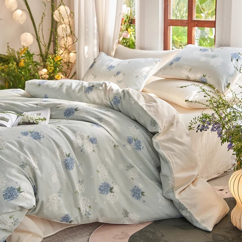 多喜爱四件套A类双层纱清新卧室全棉纯棉床上四件套1.8米床单双人