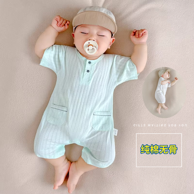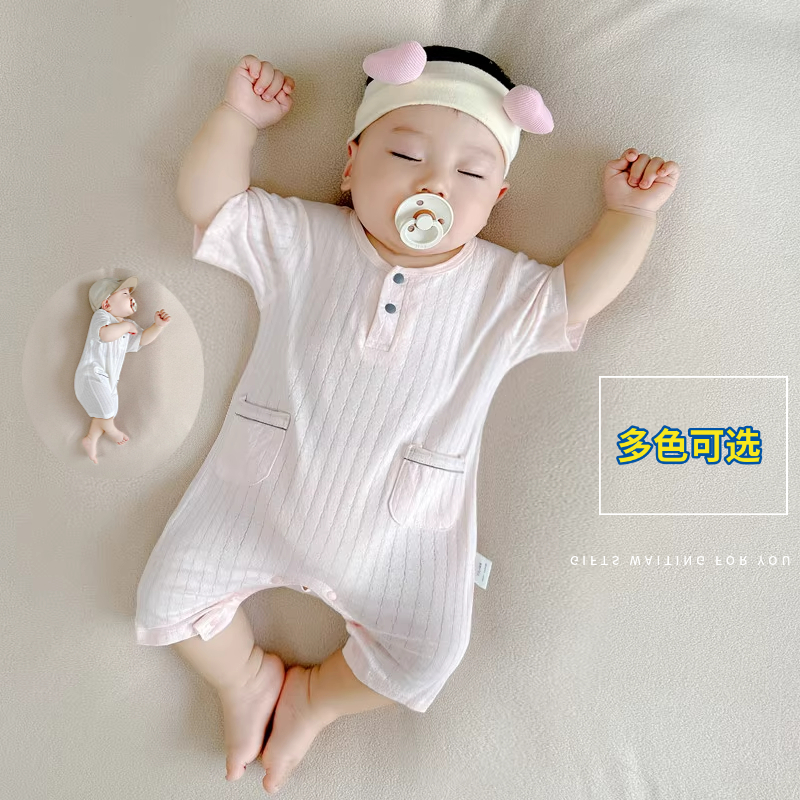 婴儿衣服夏季薄款纯棉无骨男女宝宝新生儿短袖连体衣婴幼儿装短爬
