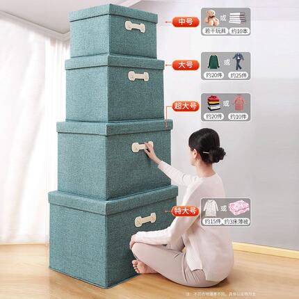 日系棉麻收纳箱可折叠衣柜储物箱抽屉式带盖整理箱衣服玩具收纳盒