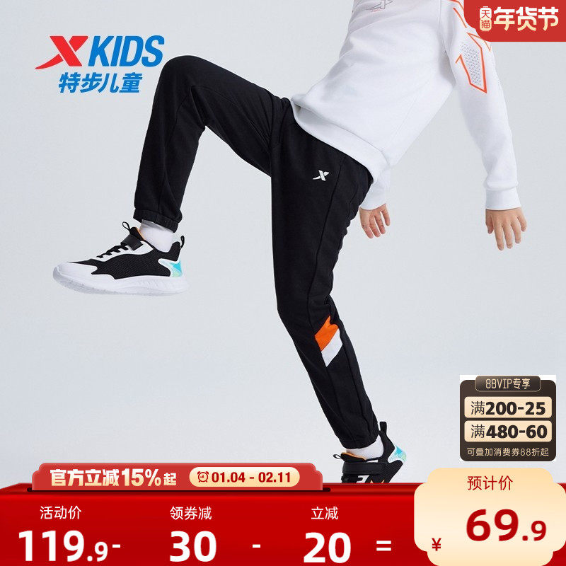 特步童装男童拼接运动裤儿童长裤2025秋冬款大童休闲裤子加绒卫裤