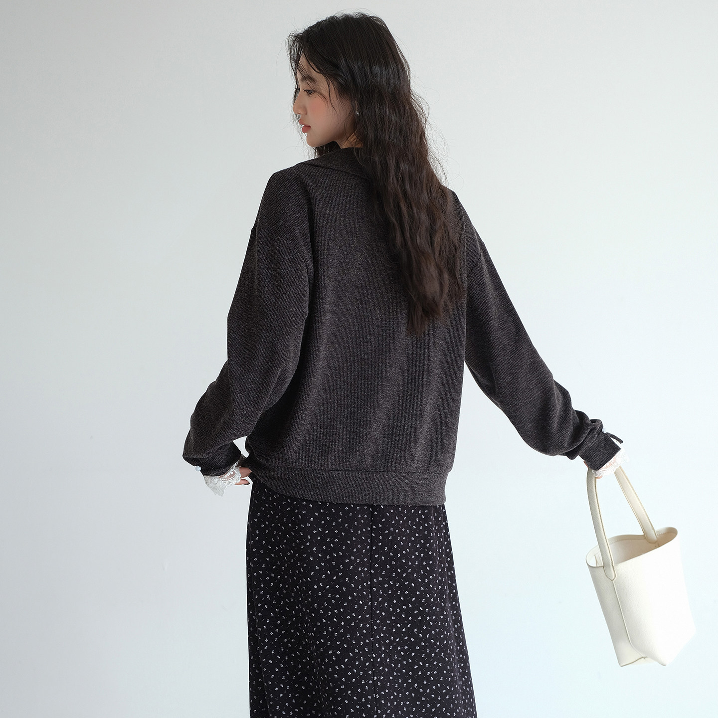 蓝若水法式温柔复古气质宽松上衣