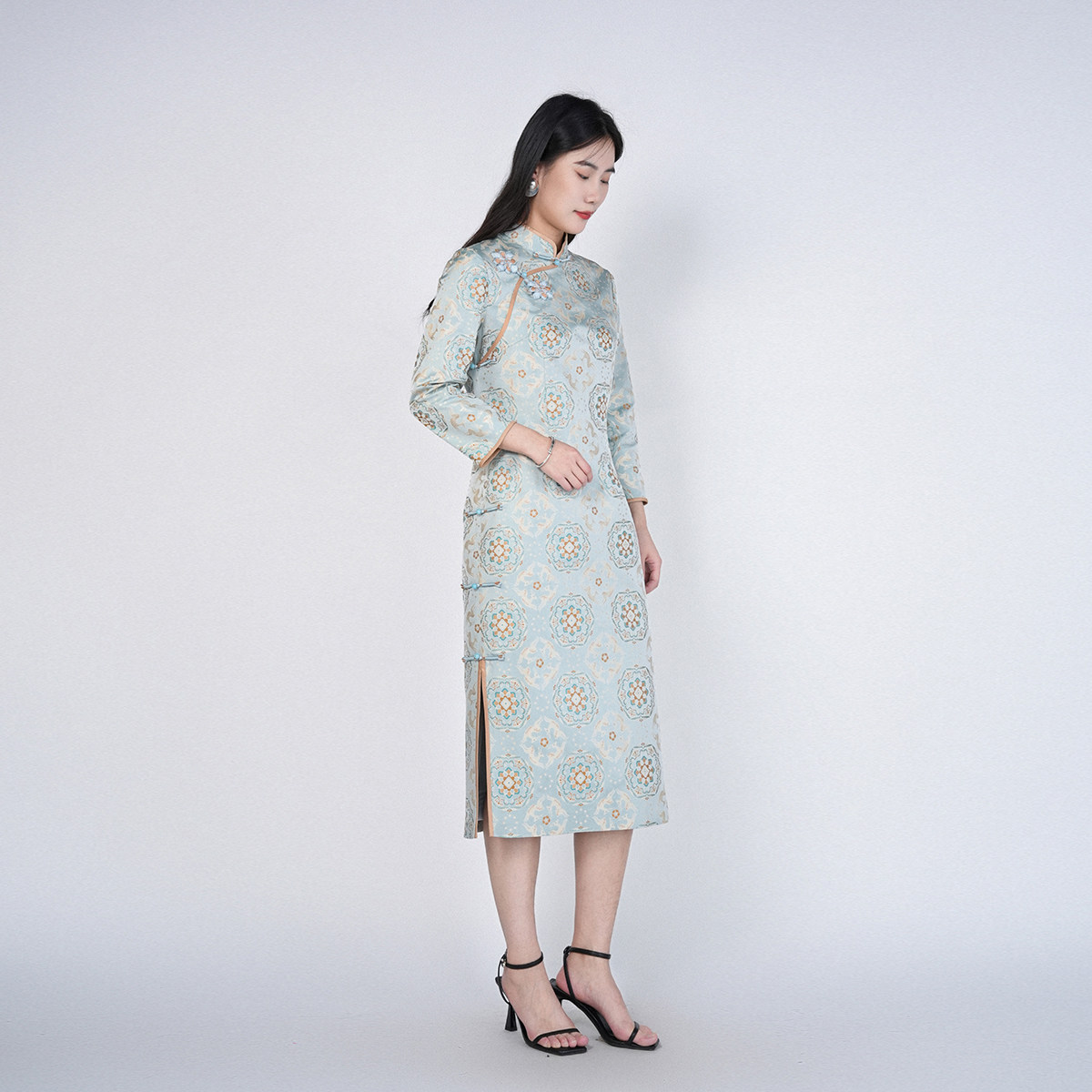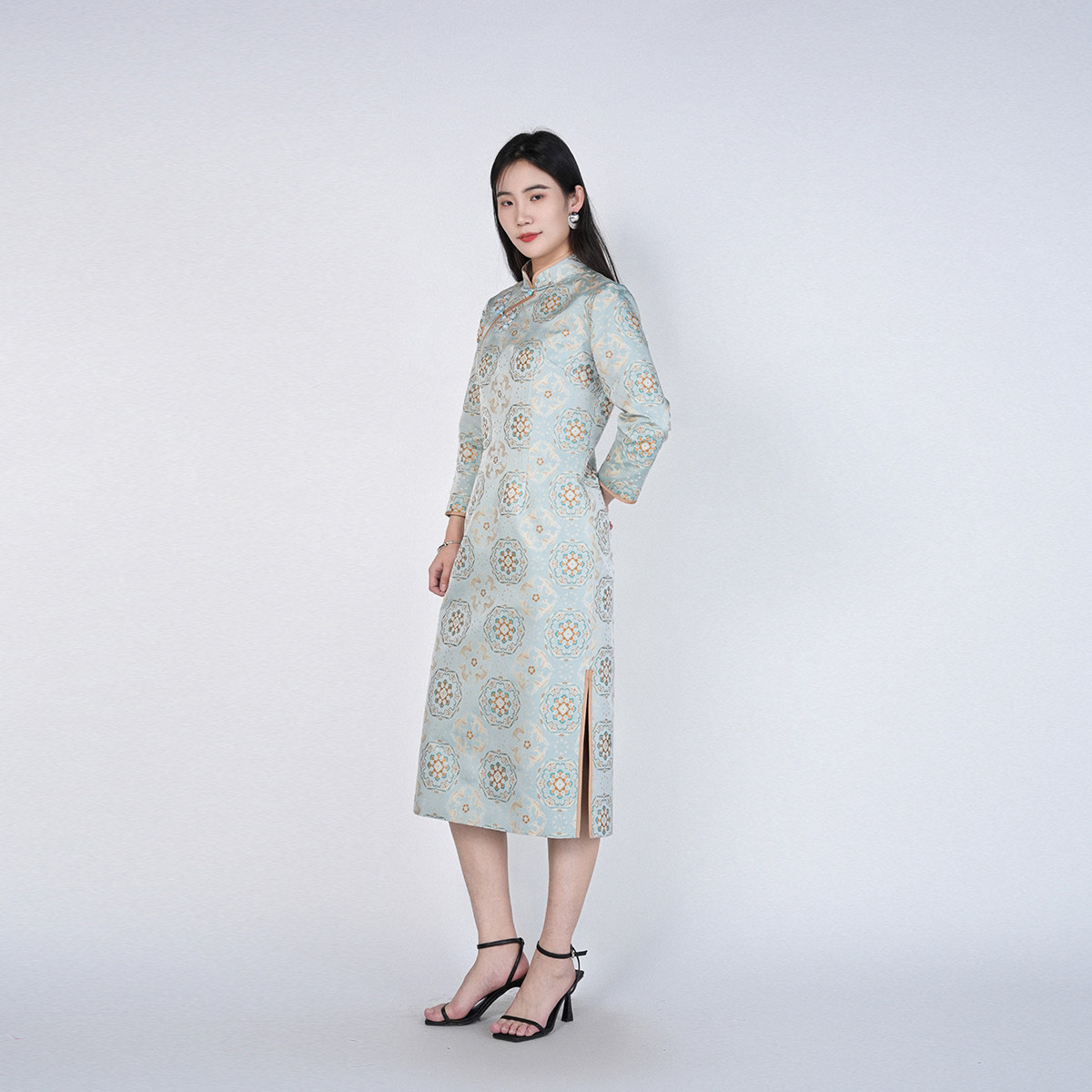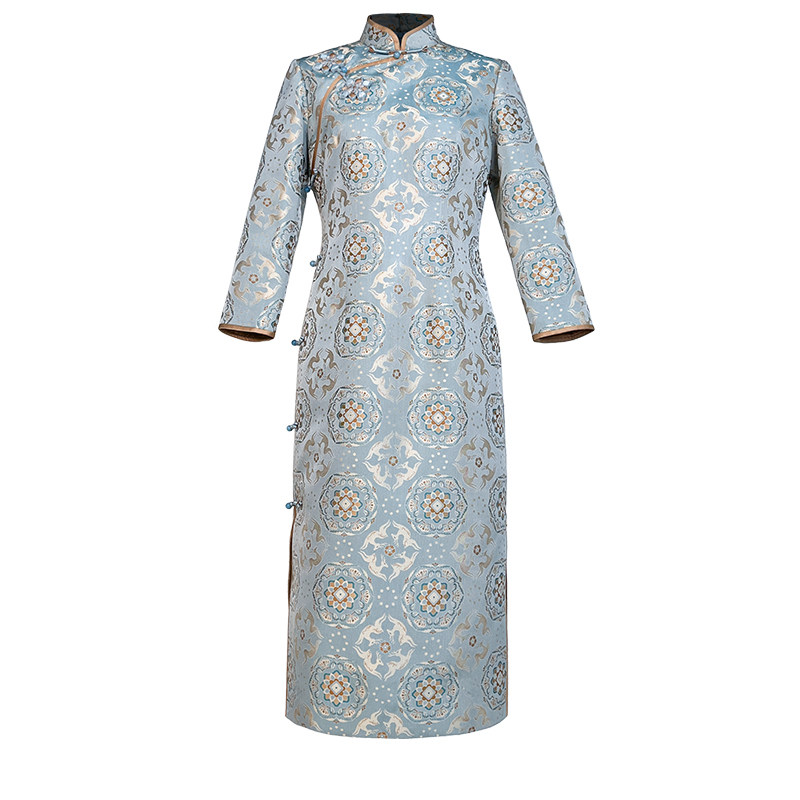 浒城古娘春季新款女装中国风新中式桑蚕丝宋锦旗袍连衣裙女春秋