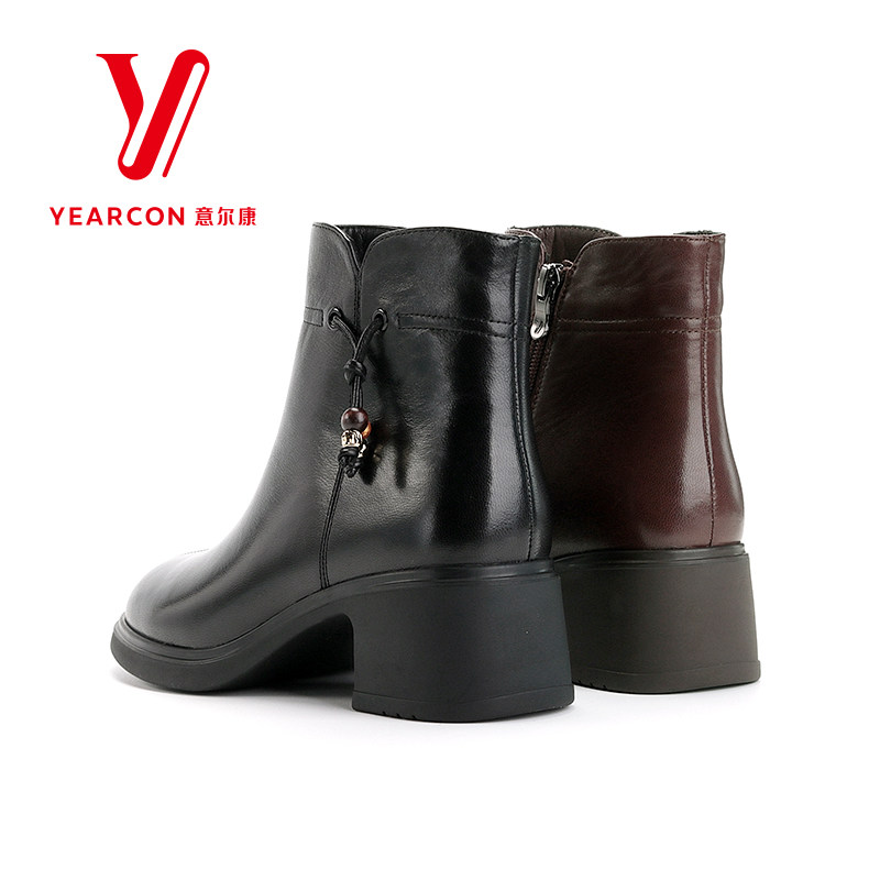 意尔康2025新款冬季真皮短靴