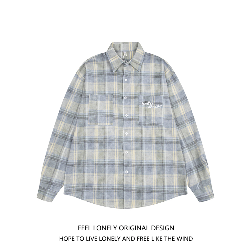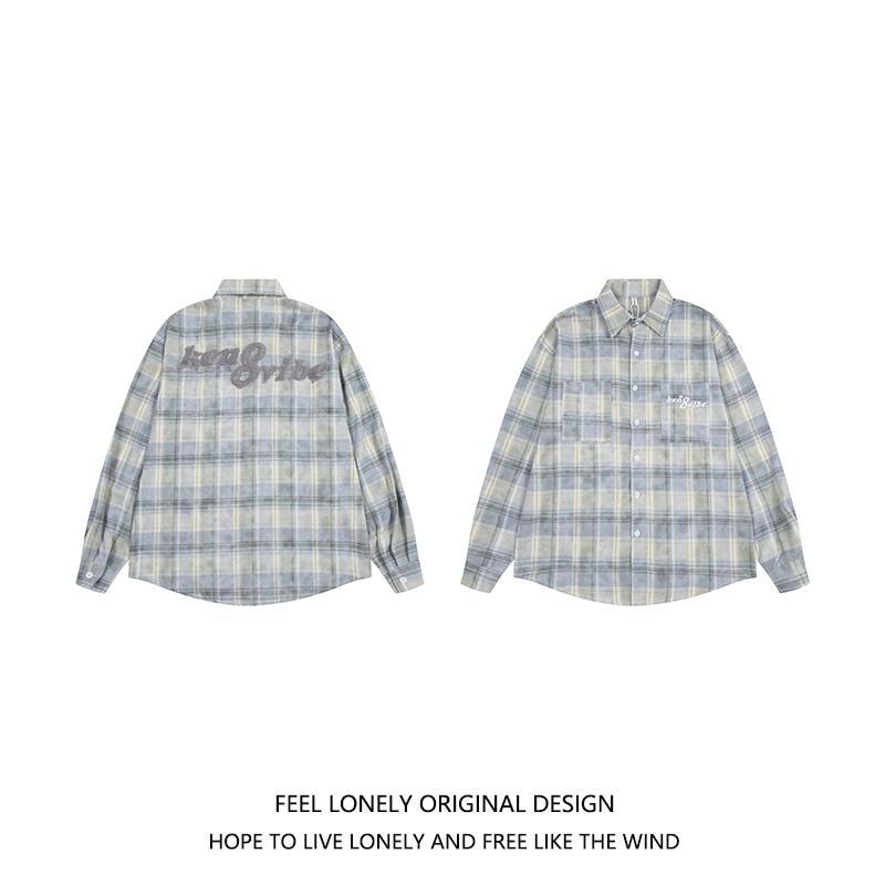 Feel lonely慵懒风外套格子衬衫男女春季设计感宽松休闲长袖上衣