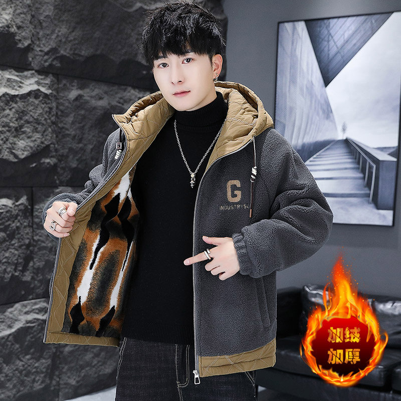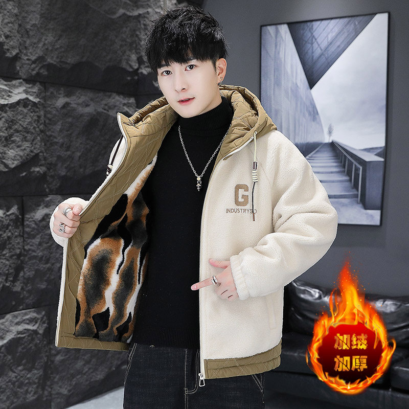 以纯羊羔绒夹克加绒加厚颗粒绒潮