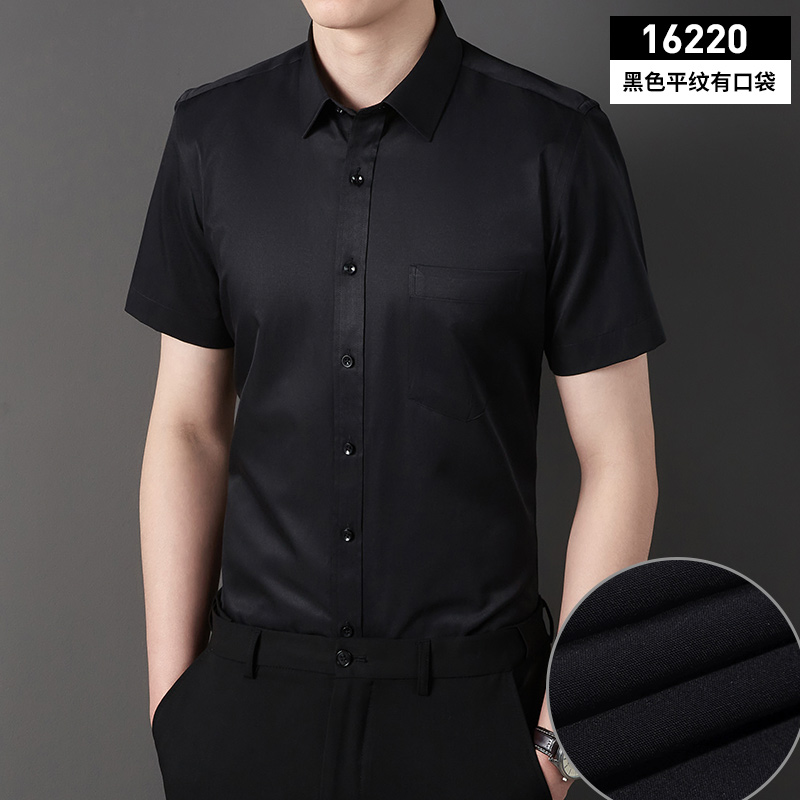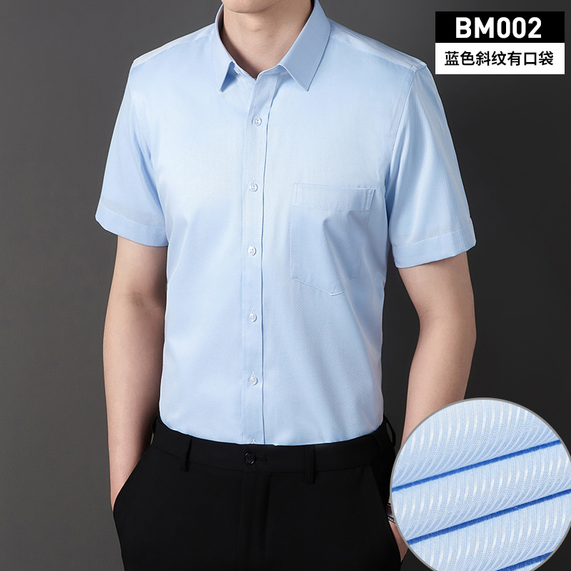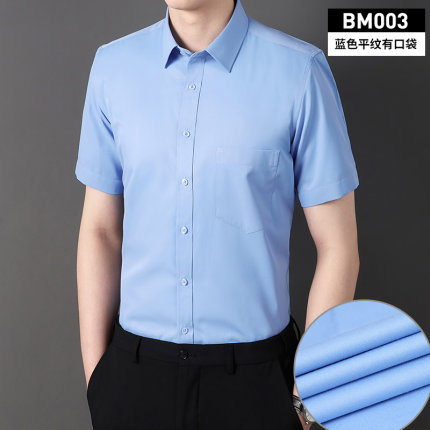 2024夏季薄款短袖衬衫男商务休闲职业装半袖纯蓝色衬衣男装有大码
