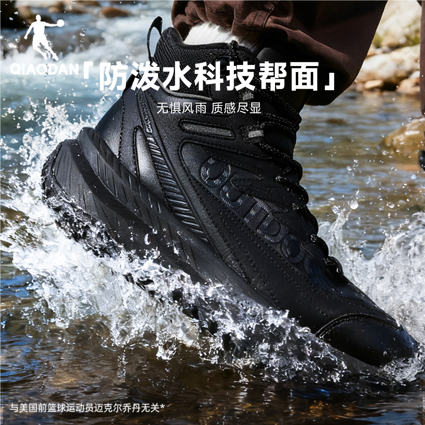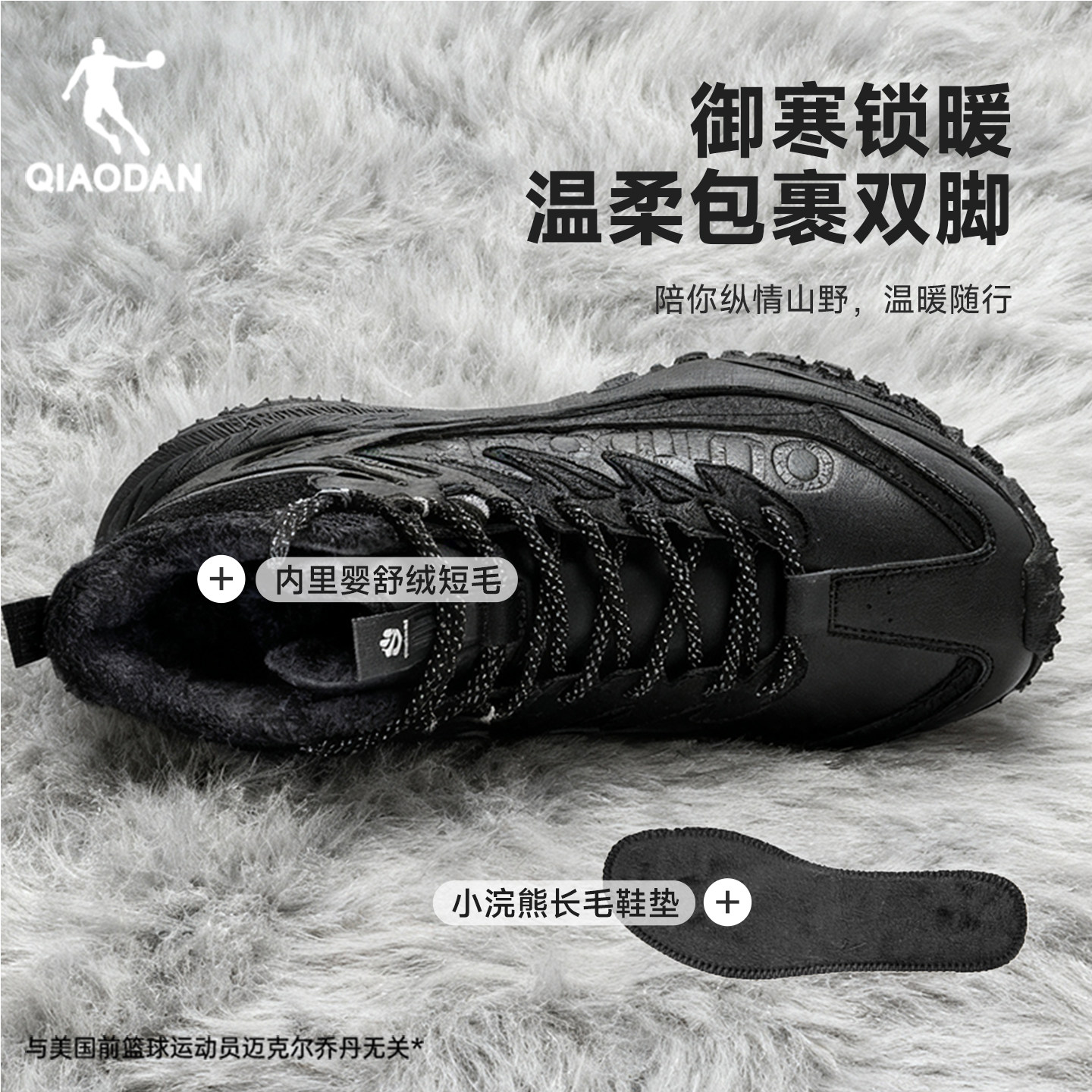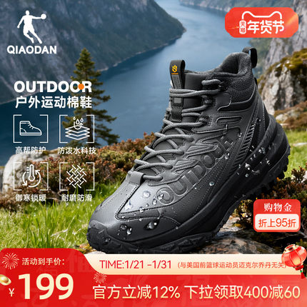 乔丹冬季加绒登山鞋男保暖高帮防滑户外防水加厚棉鞋徒步运动鞋男