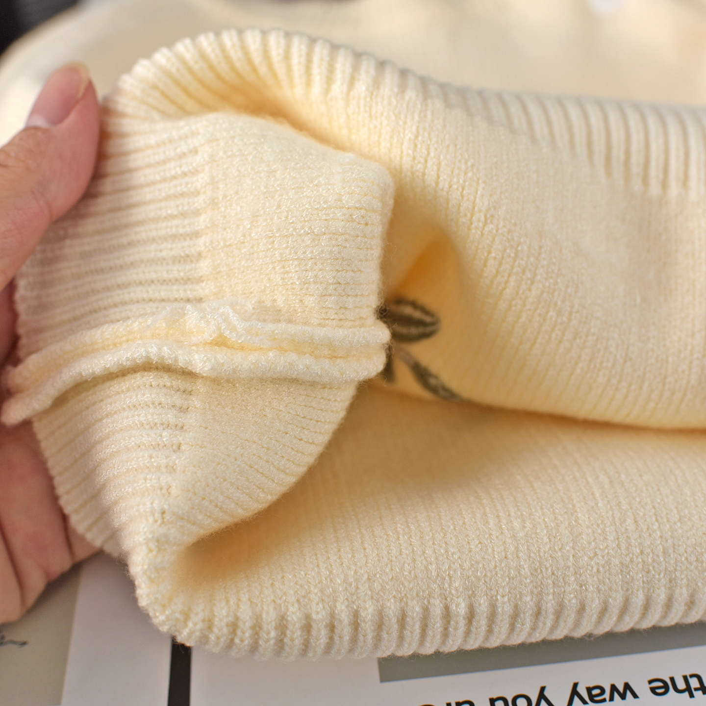 小女孩甜美柔软圆领套头毛衣