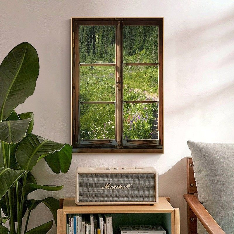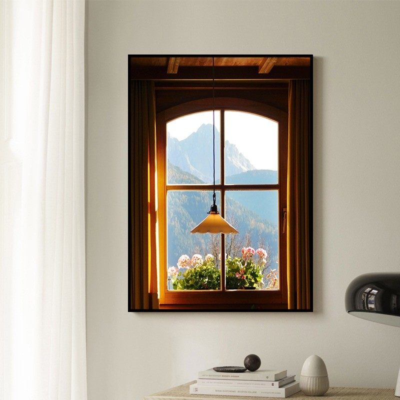 法式假窗户风景装饰画ins风客厅简约墙壁画小众复古卧室床头挂画