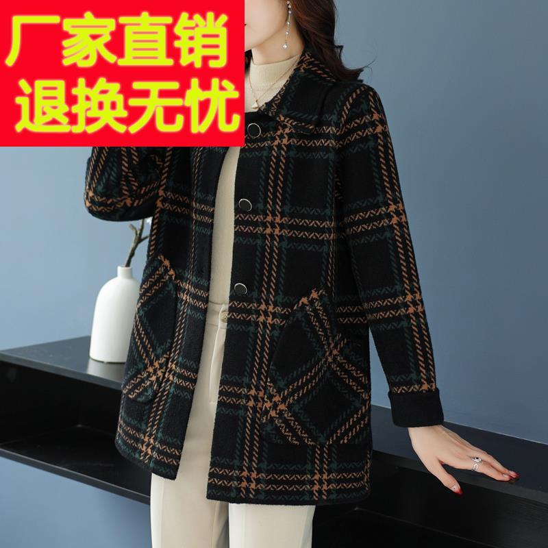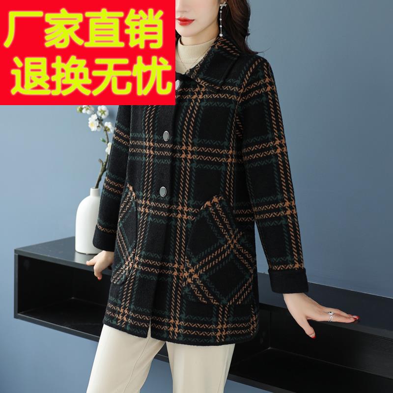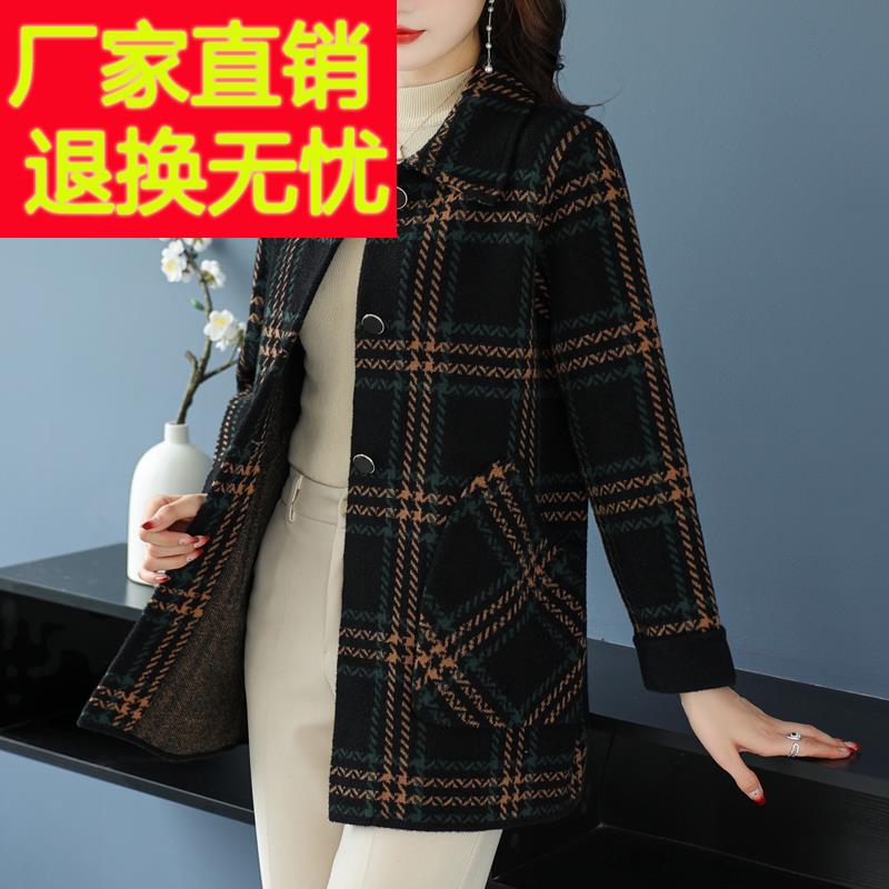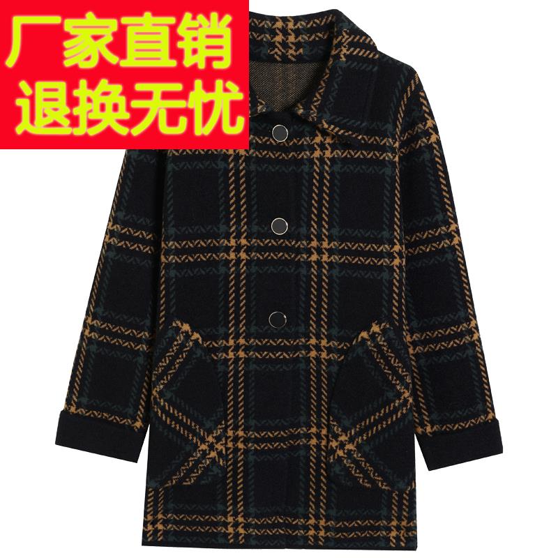 中老年妈妈秋冬针织羊毛呢子外套胖女人加大码中长款双面羊绒大衣