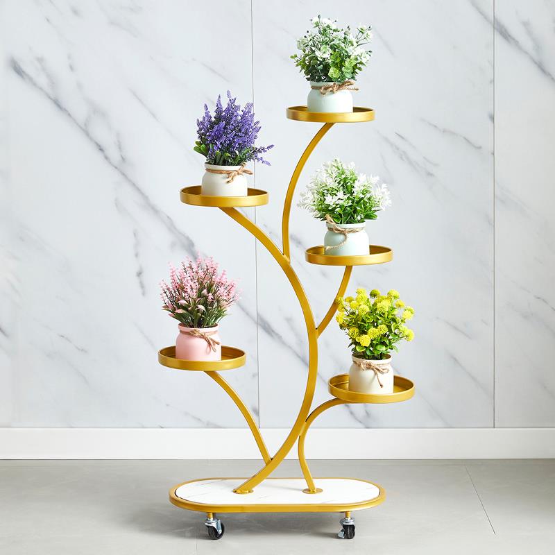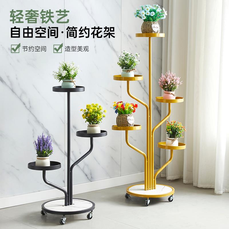 轻奢铁艺花架子客厅落地式多层带轮置物架阳台植物花卉摆放花盆架