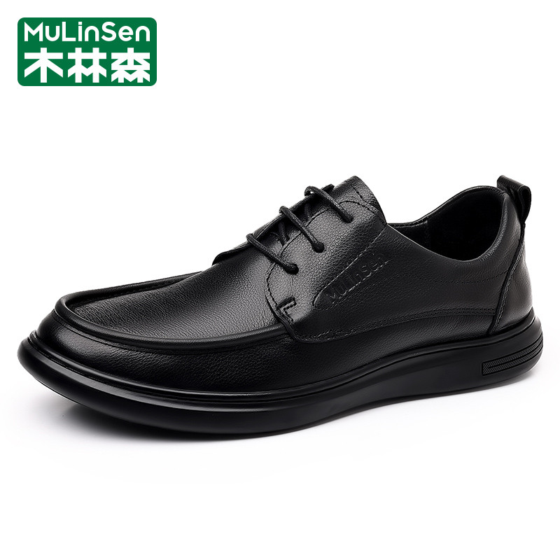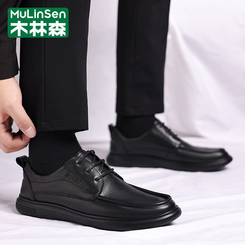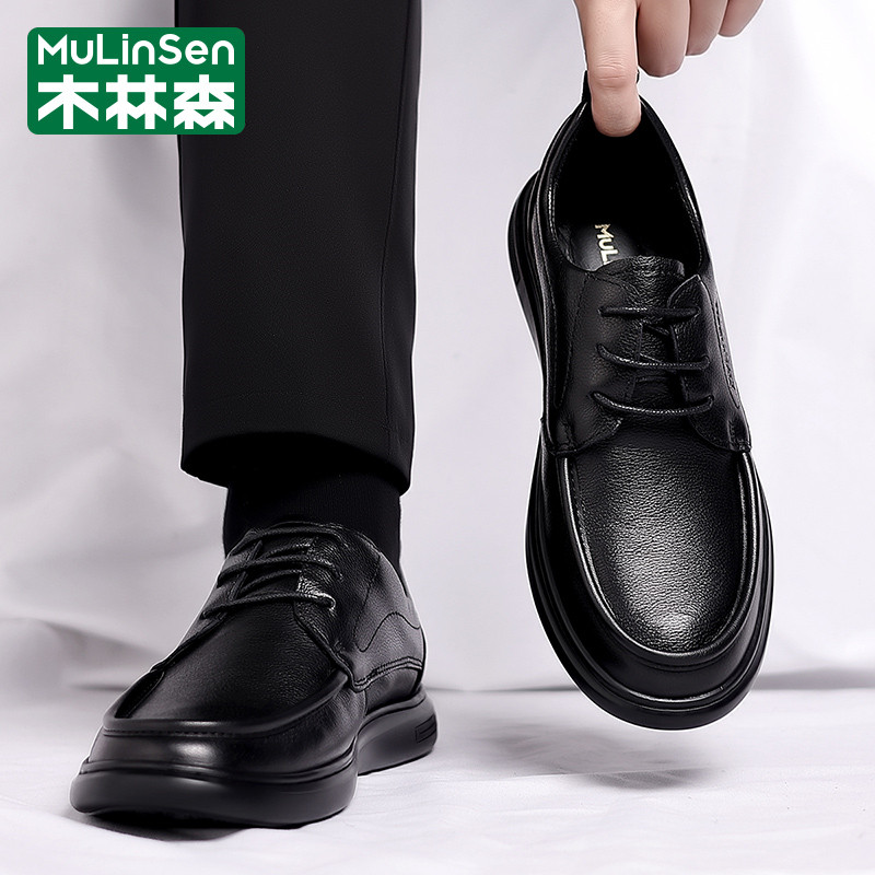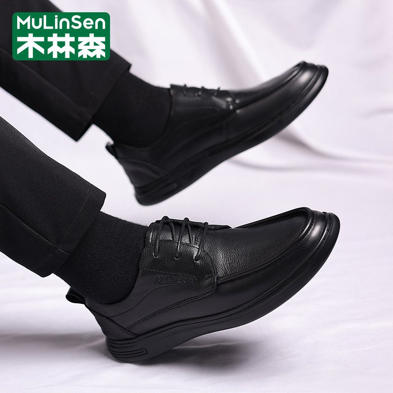 木林森皮鞋男冬季休闲商务英伦正装头层牛皮软底爸爸工作上班潮鞋