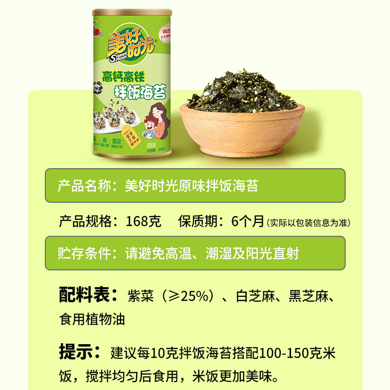 美好时光极简配料×高钙低盐拌饭海苔碎168g大罐儿童即食紫菜包饭
