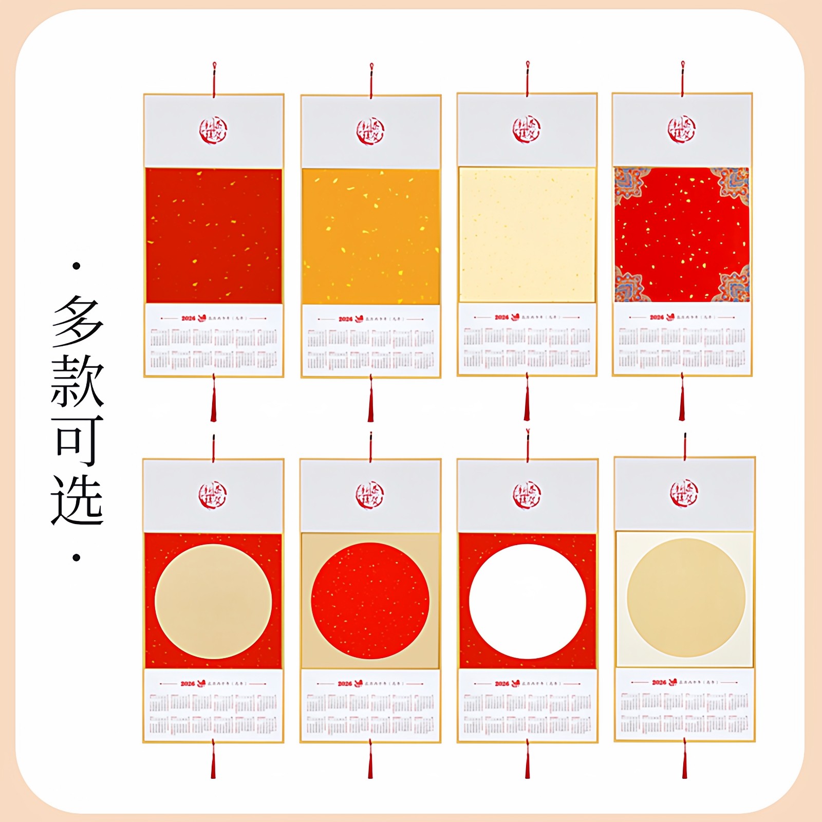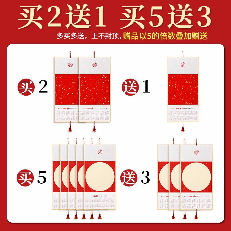 2026新款马年空白宣纸挂历折叠日历半生熟写福字专用书法国画作品纸镜片卡纸万年红洒金年历挂件文创diy福卡