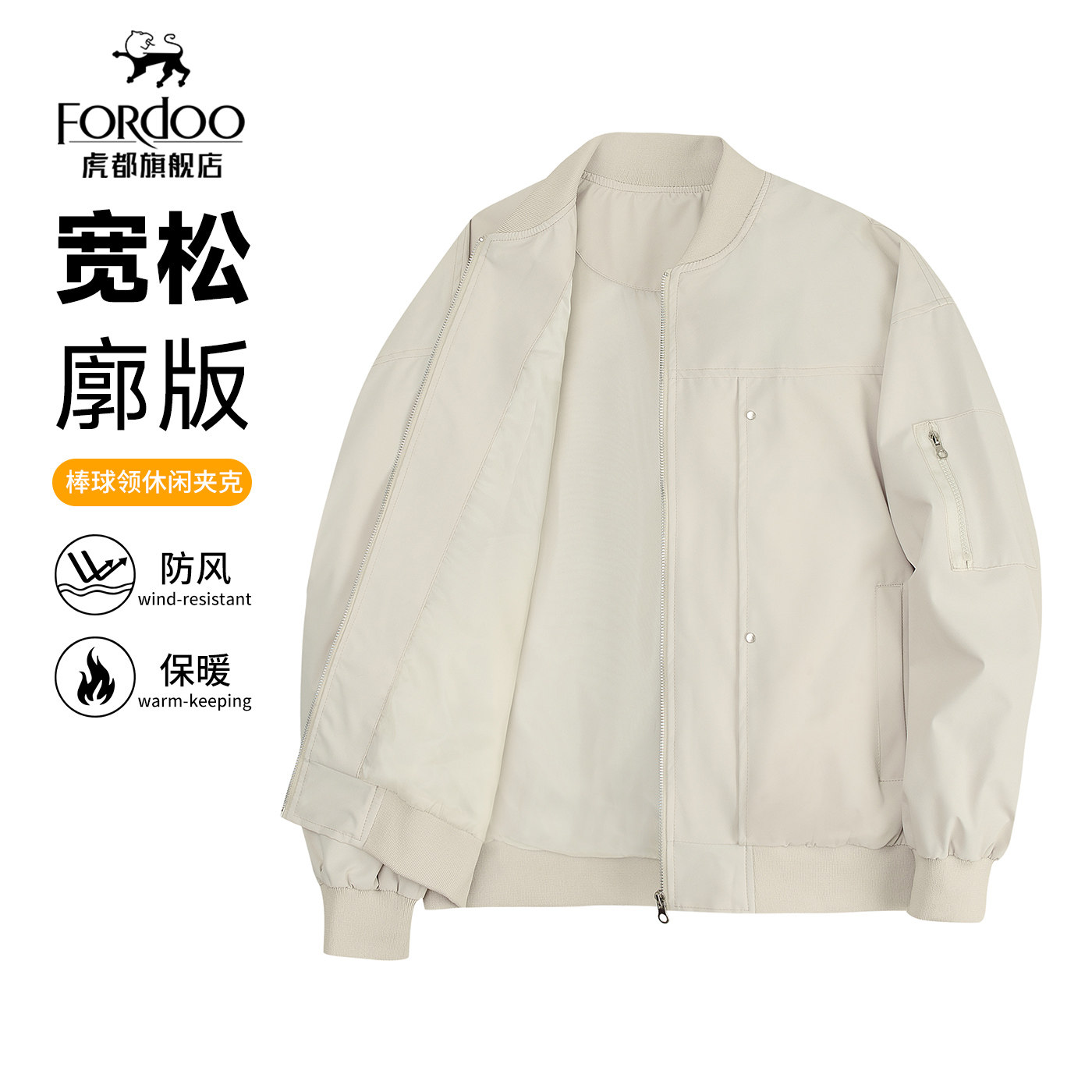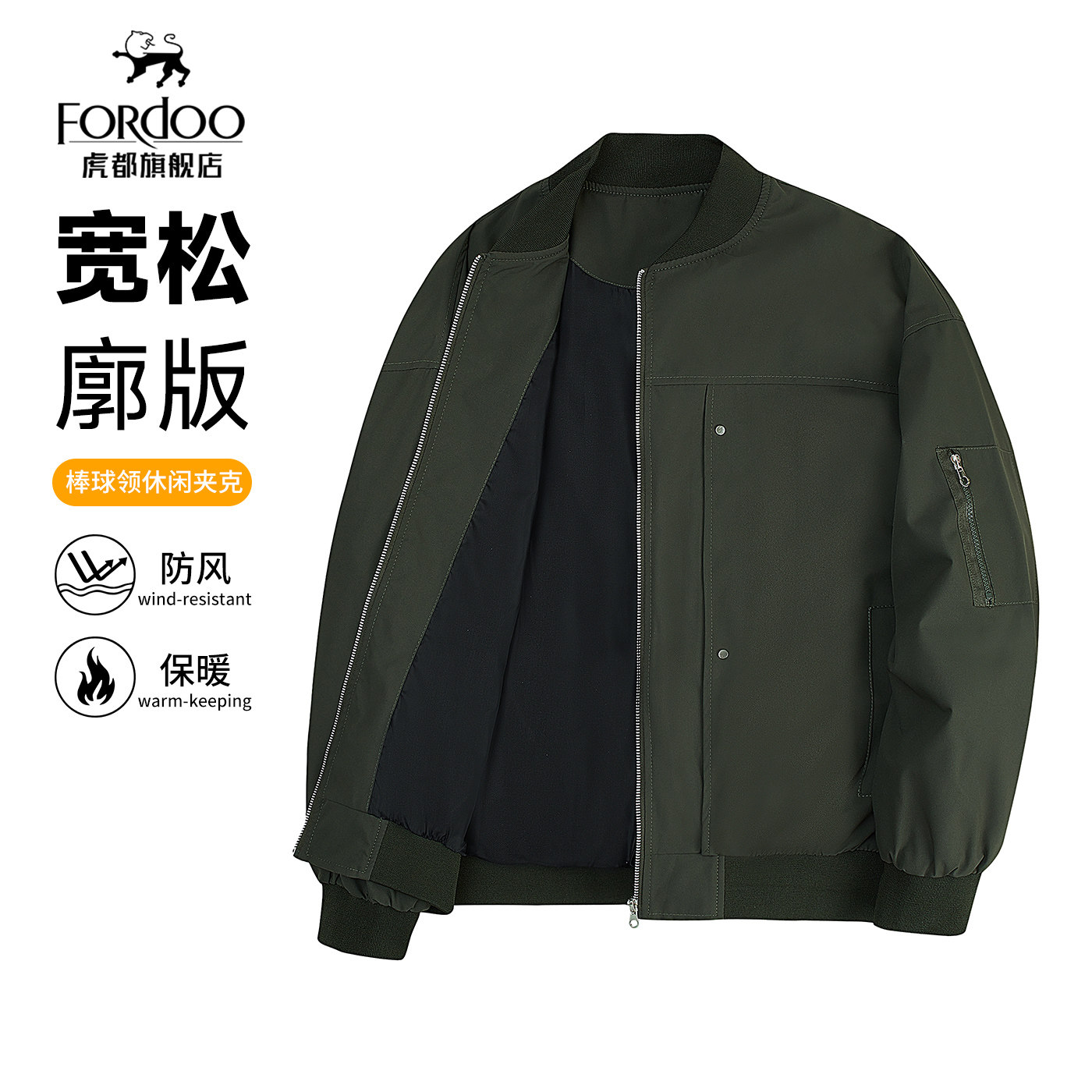 【棒球领夹克】虎都秋春新品亲肤舒适日常百搭飞行员夹克男士外套