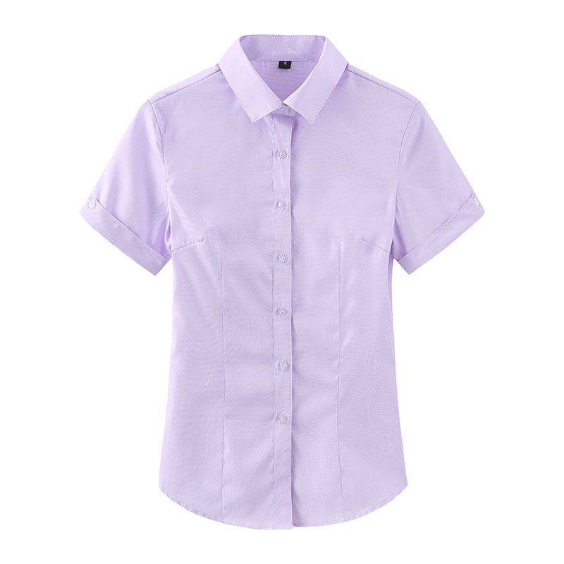 中国银行工作服紫色蓝色女式衬衣夏季薄款短袖t恤时尚正装衬衫
