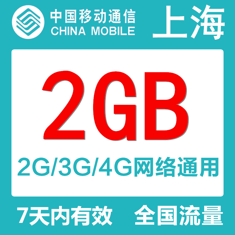 上海移动流量充值2G 全国4G5g通用手机叠加包加油包上海移动7天包