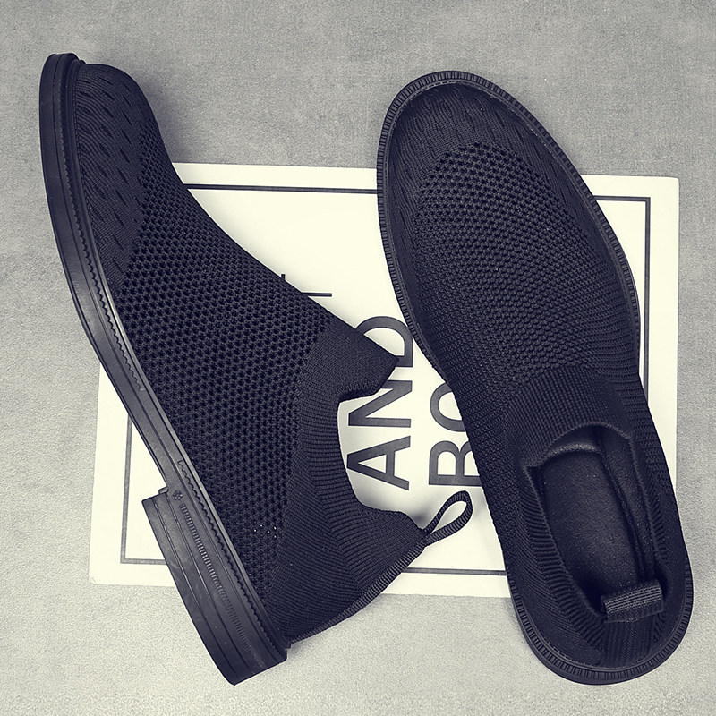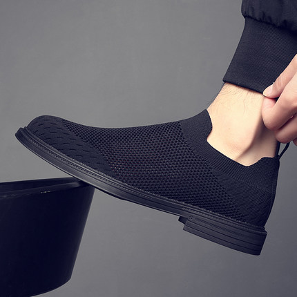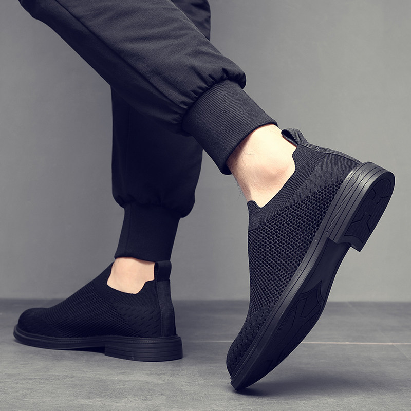 2025春夏新款飞织布鞋男潮流透气网面弹力袜子鞋一脚蹬懒人鞋子男