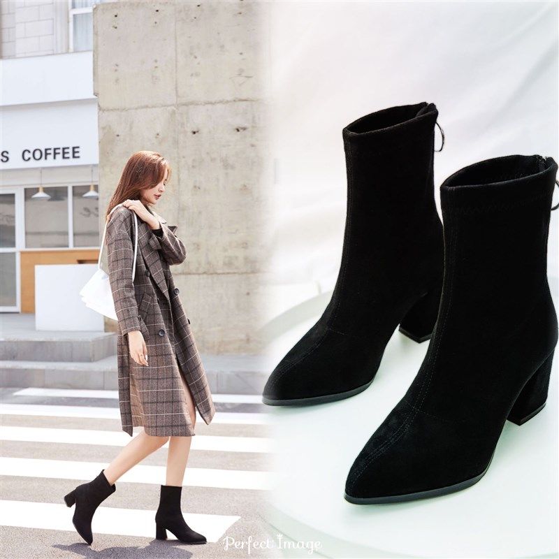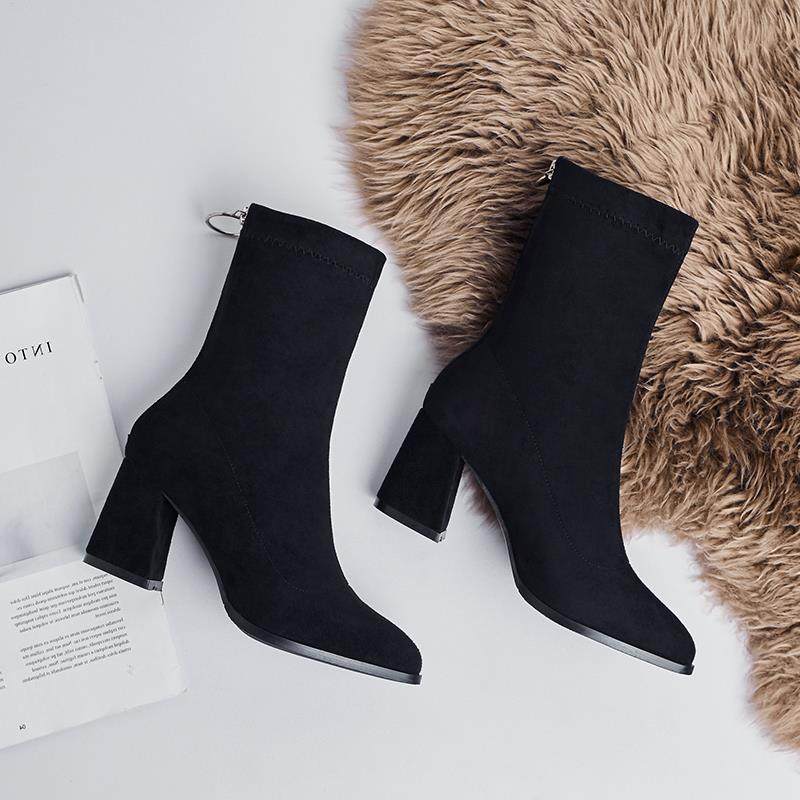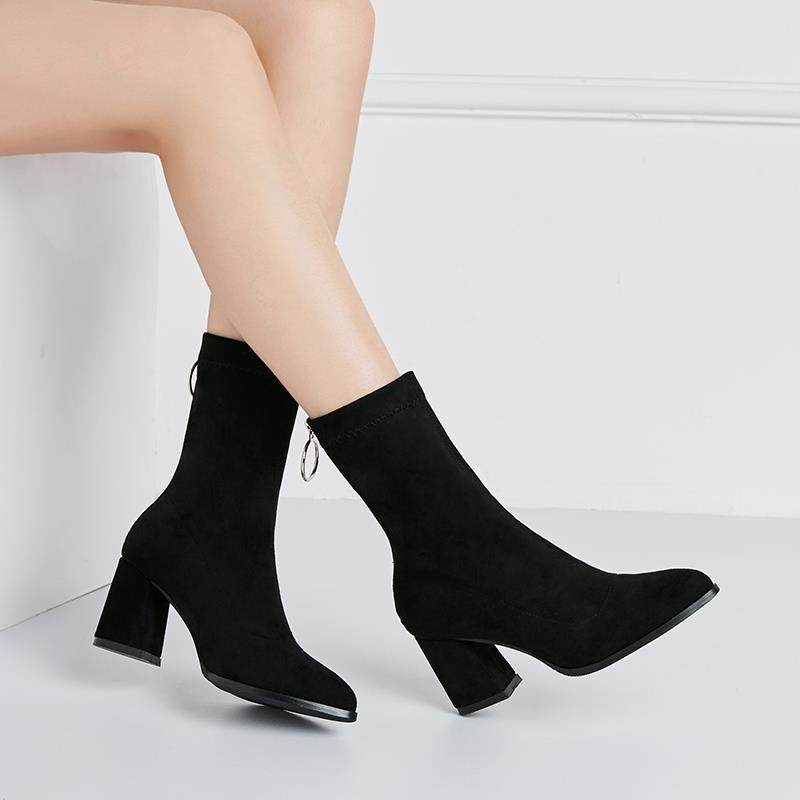 2021年新款短靴女秋冬季粗跟高跟鞋百搭网红瘦瘦春秋单靴马丁靴子