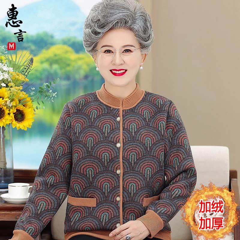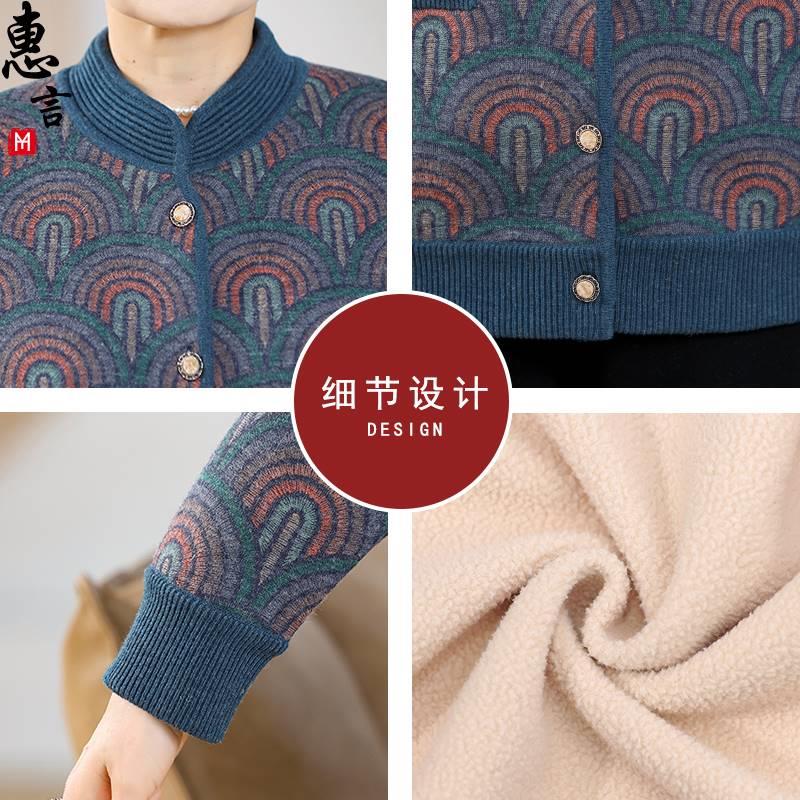 妈妈秋冬短款外套2023新款大码上衣中老年女装冬装加绒毛衣奶奶装