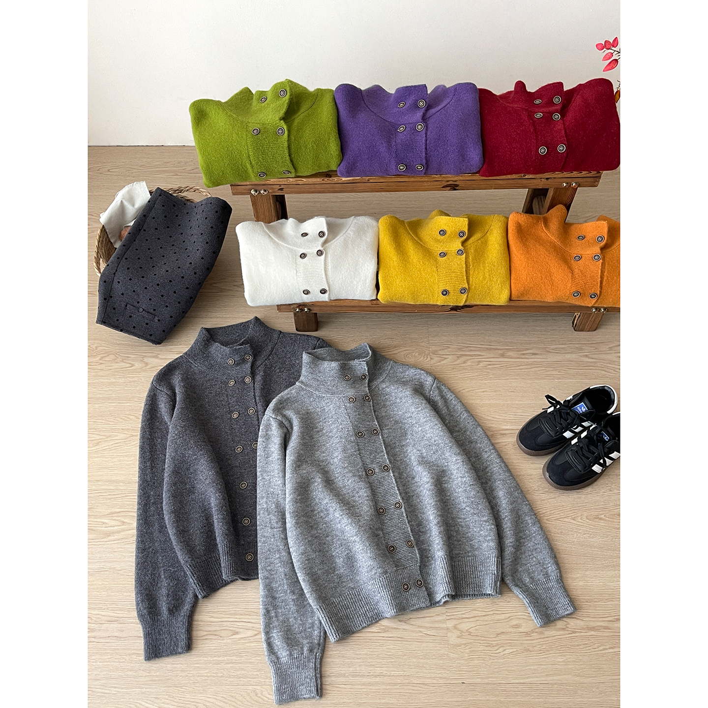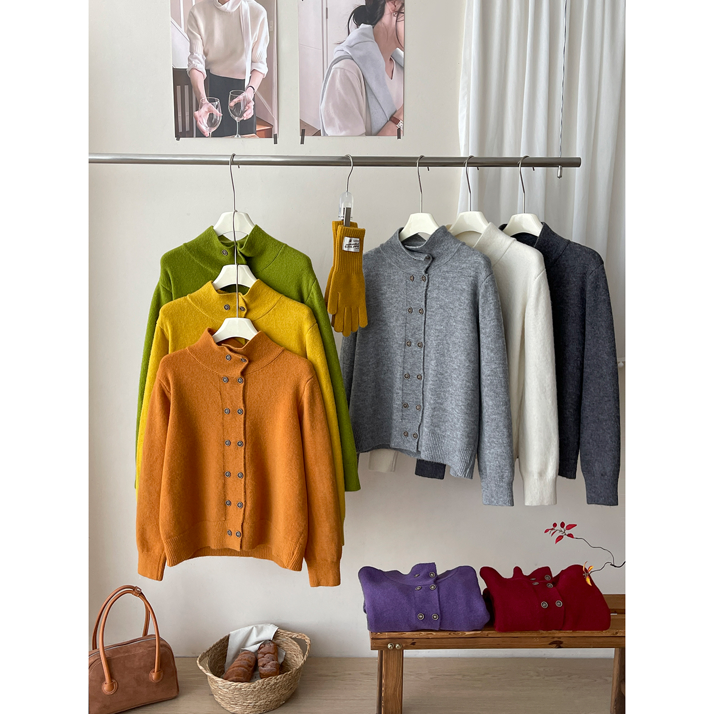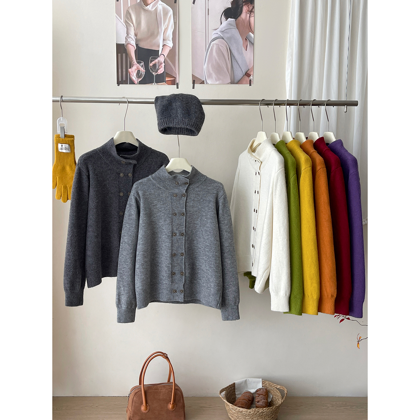 韩国东大门双排扣立领软糯毛针织开衫女秋冬洋气显瘦百搭外套上衣