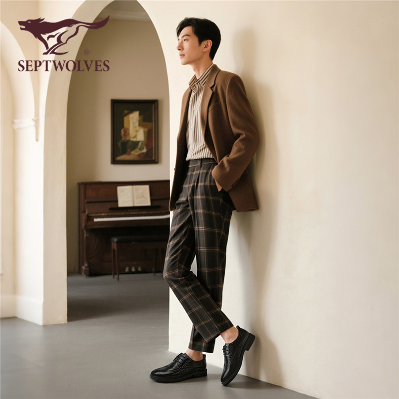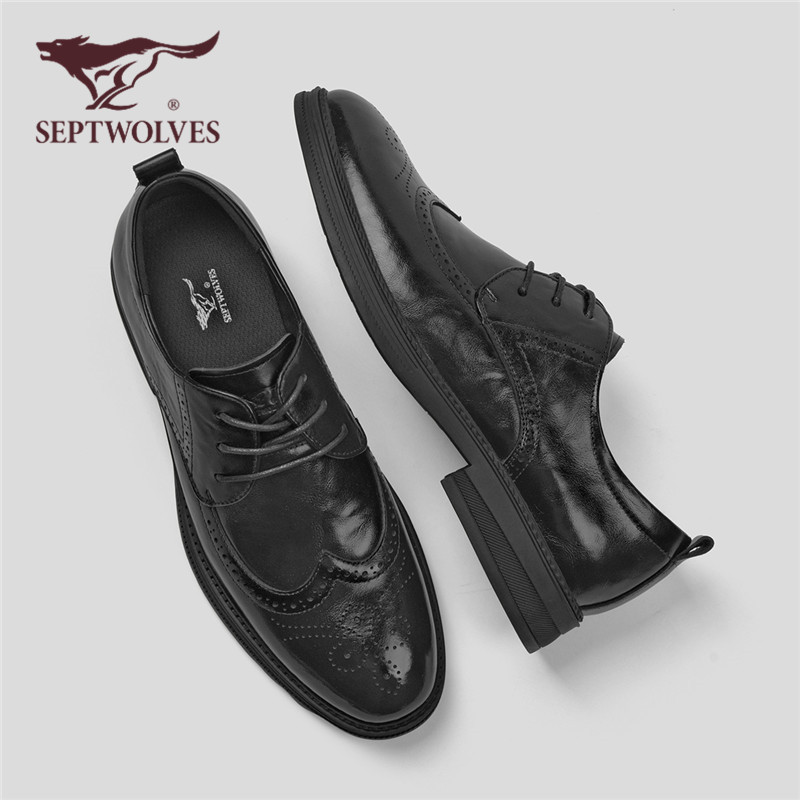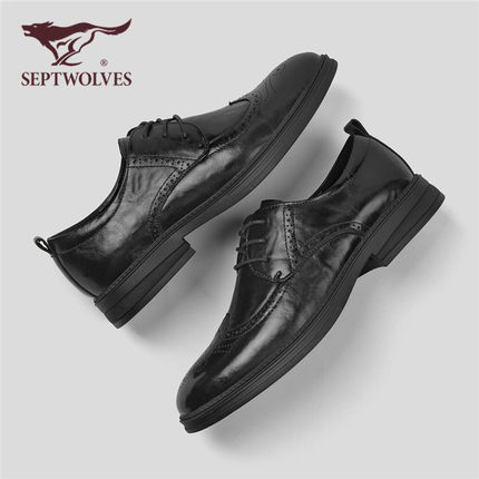七匹狼男士皮鞋2025新款冬季布洛克雕花男鞋厚底内增高结婚新郎鞋