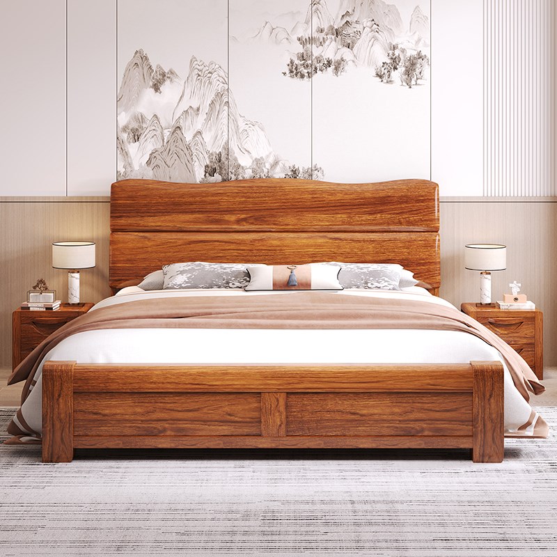 乌金木1.5米中式现代简约双人1.8米储物主卧高箱婚床气压全实木床