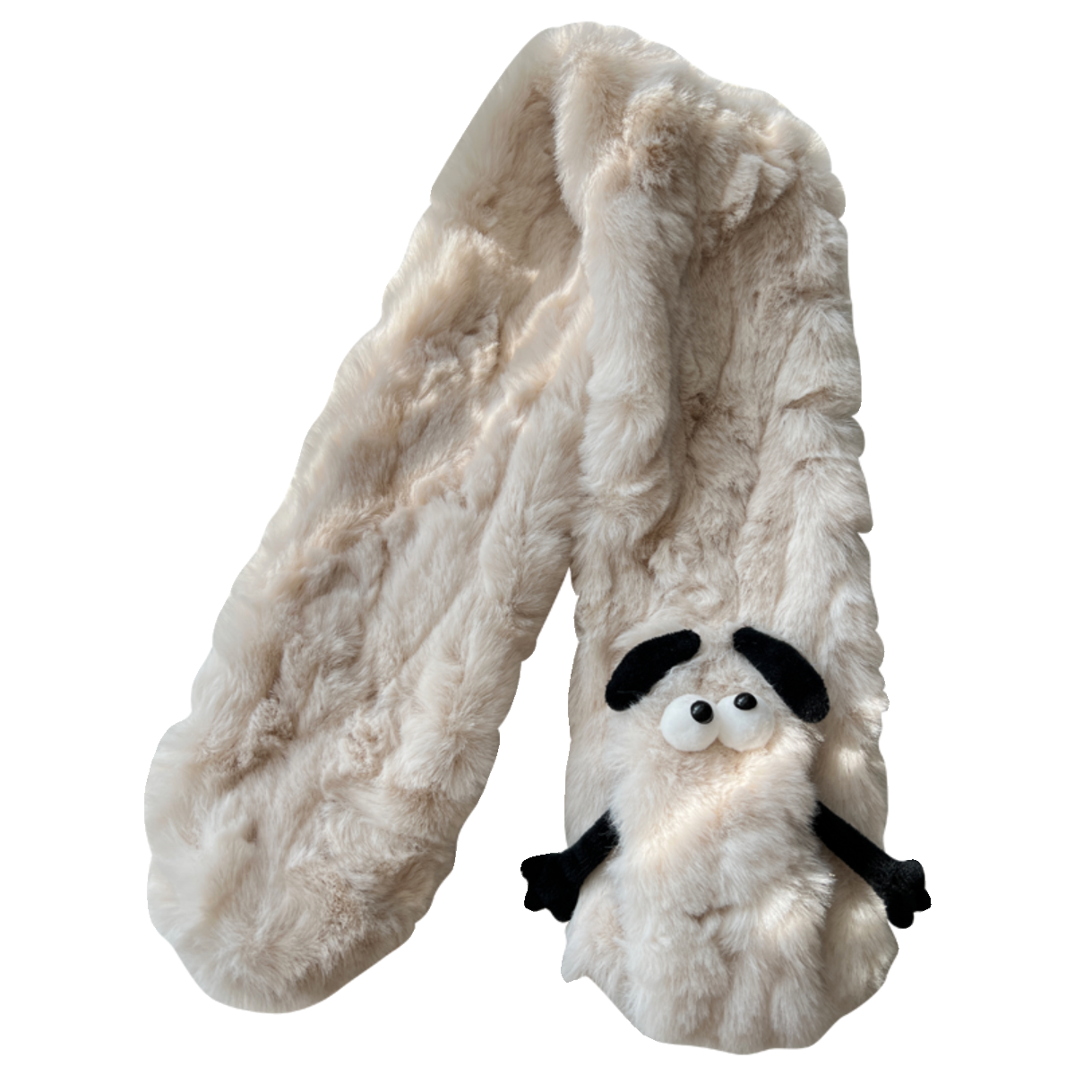 可爱搞怪煤球小狗毛绒围脖女冬季加厚保暖护颈韩版交叉小围巾毛领