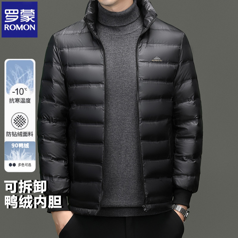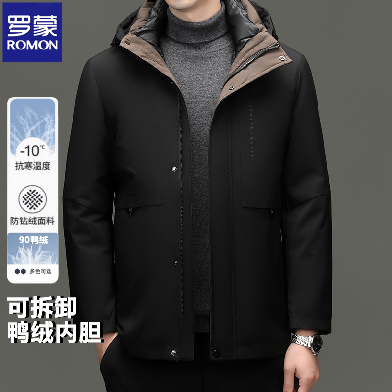 Romon/罗蒙2024年冬季新款可拆卸内胆外套白鸭绒羽绒服高端防风