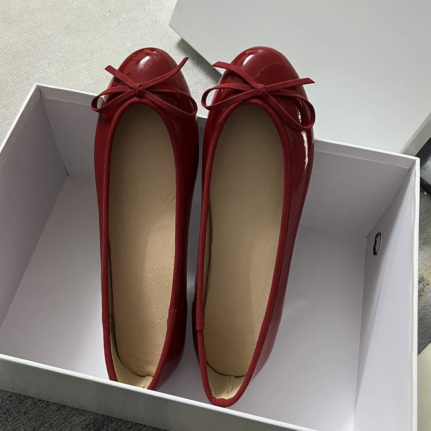 芭蕾千金~浅口漏指缝小红鞋女羊皮圆头平底百搭蝴蝶结芭蕾舞单鞋