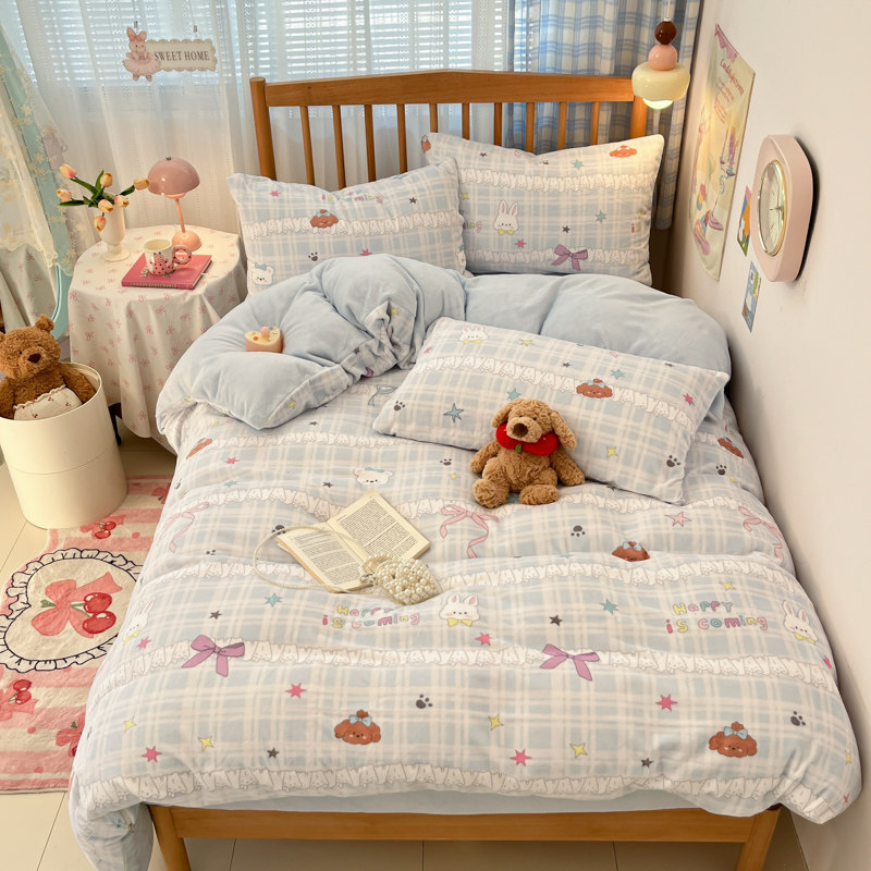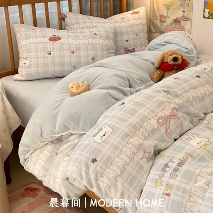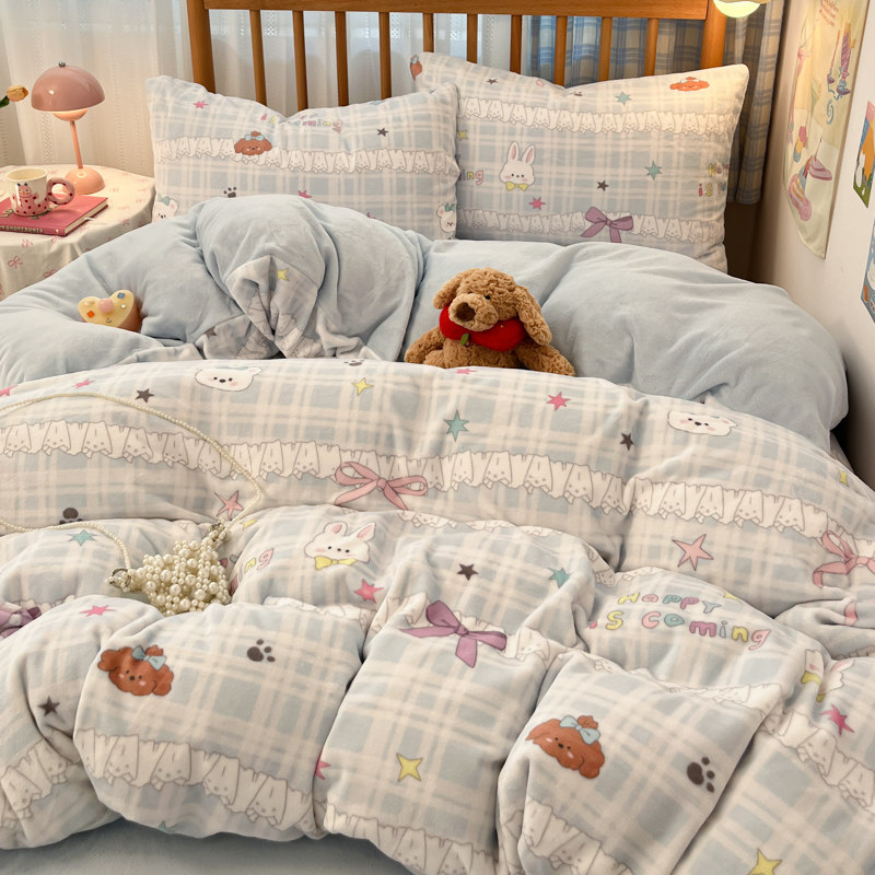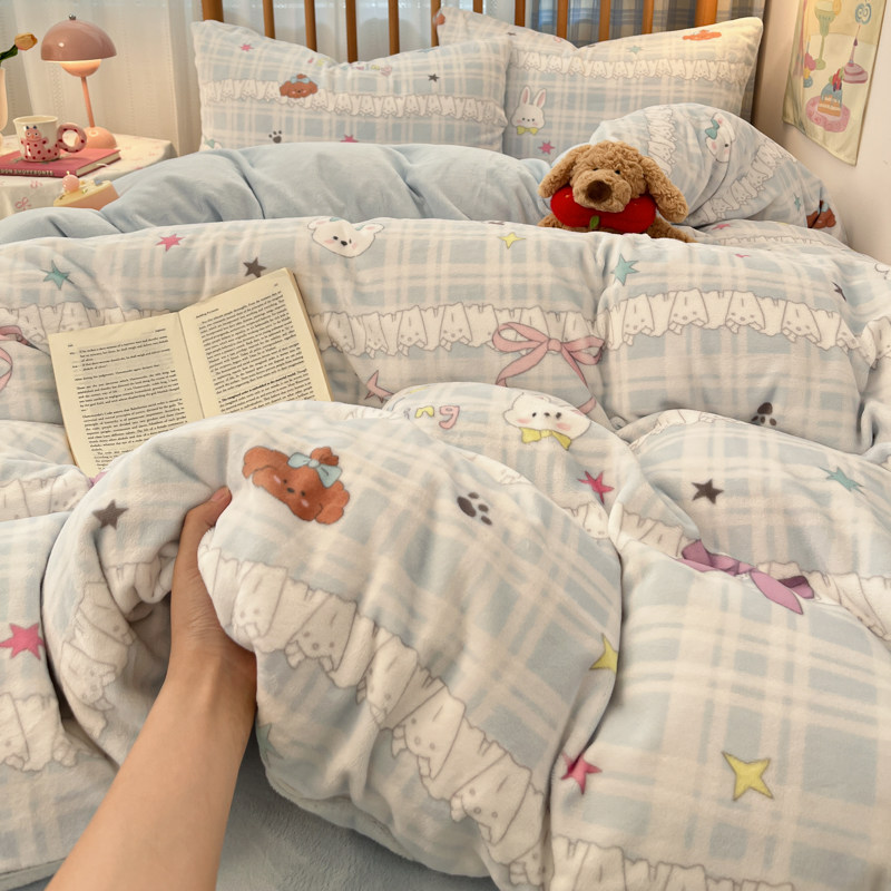 ins四件套牛奶绒加厚双面珊瑚绒被套床单被罩冬季宿舍床上三件套4