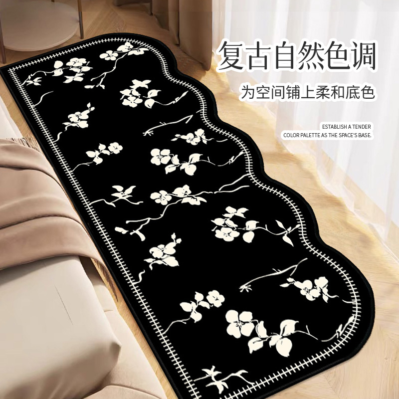 中古风绿色卧室地毯亚麻床边毯椭圆主卧房间床前床下地垫免洗可擦