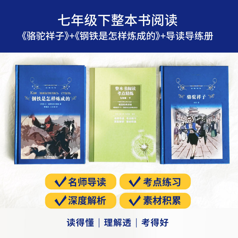 【新版七下书目】骆驼祥子+钢铁是怎样炼成的 世界名著原著完整版七年级初一课外必阅读书目小说畅销书新华正版书籍译林出版社