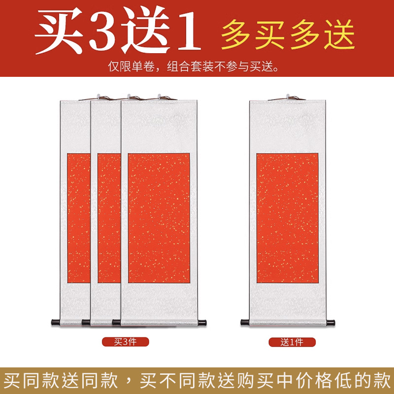 紫芳斋全绫精裱空白万年红洒金宣纸书法卷轴挂画半生半熟写毛笔字专用挂轴中堂对联纸书法作品纸四尺对开整张