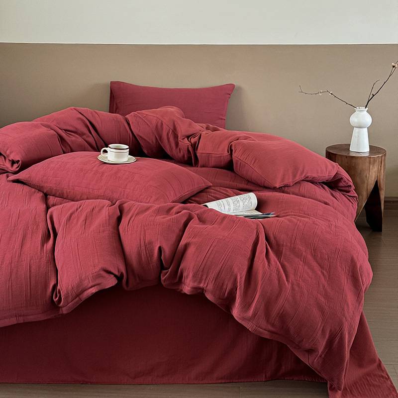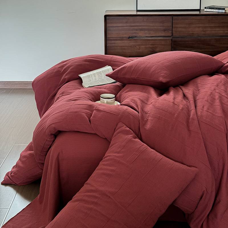 安哥拉红全棉纯棉色织双层纱布四件套新婚庆床单被套结婚床上用品