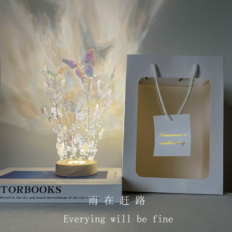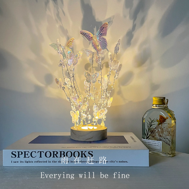 创意蝴蝶小夜灯手工diy摆件卧室床头灯浪漫氛围灯ins台灯生日礼物
