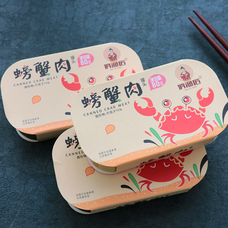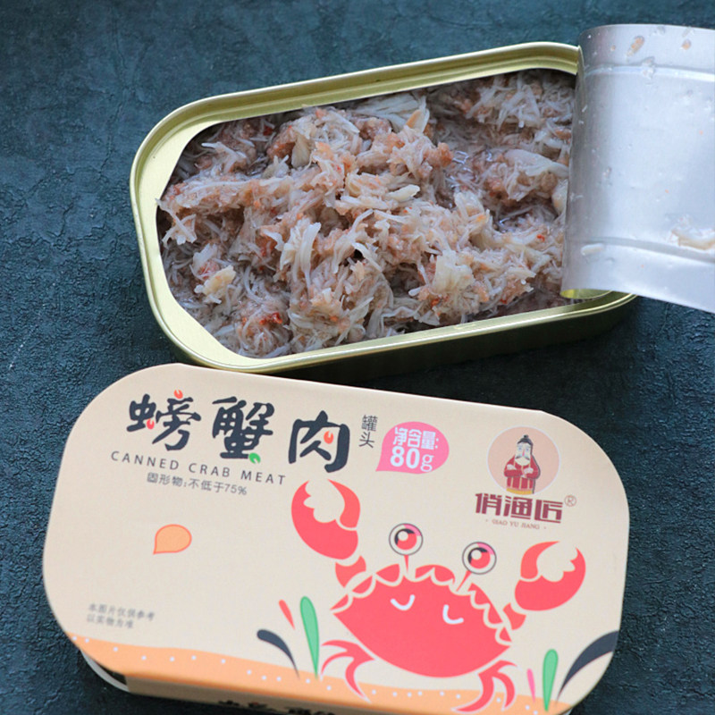 雪蟹蟹肉罐头蟹腿肉蟹柳即食螃蟹肉蟹黄海鲜罐头食品80克买三送一