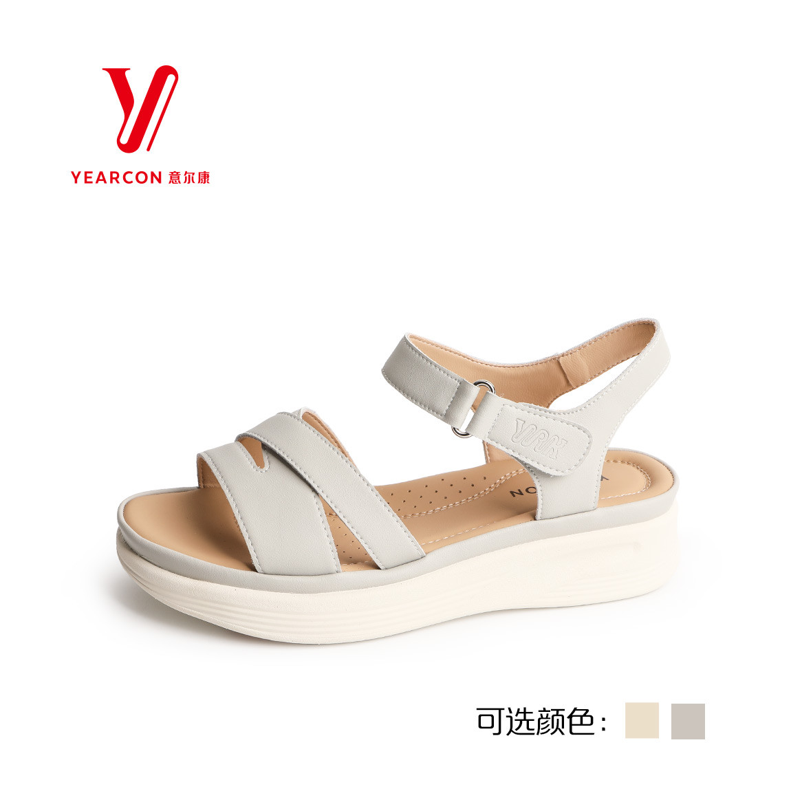 意尔康女鞋2025新款夏季平底真皮妈妈鞋舒适软底凉鞋5364AL09993Y