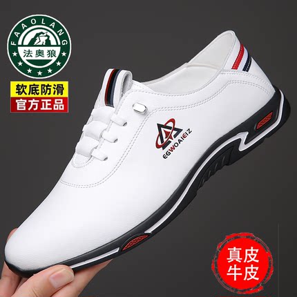 100%真皮男鞋新款软皮休闲皮鞋男士潮流百搭软底防滑透气小白鞋