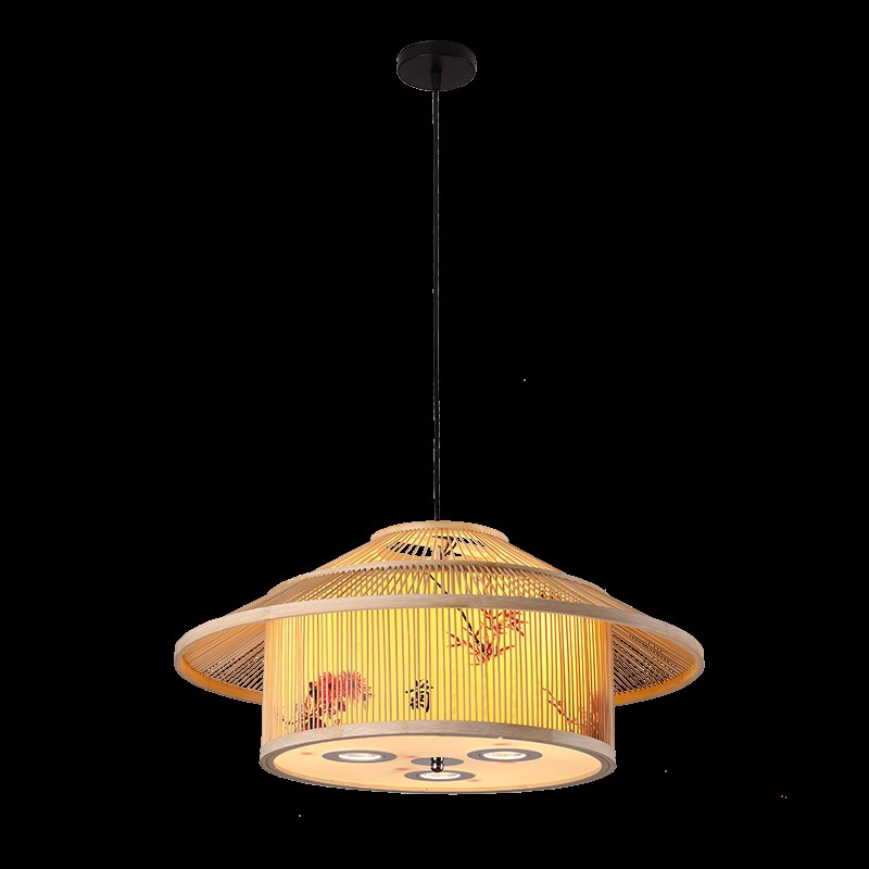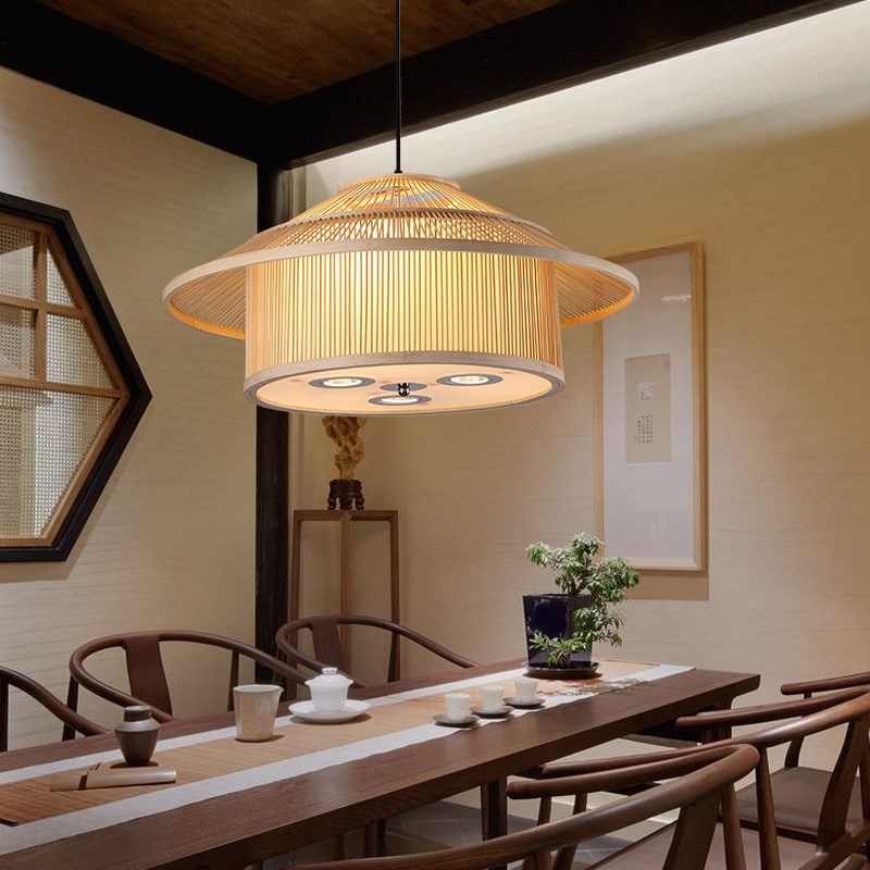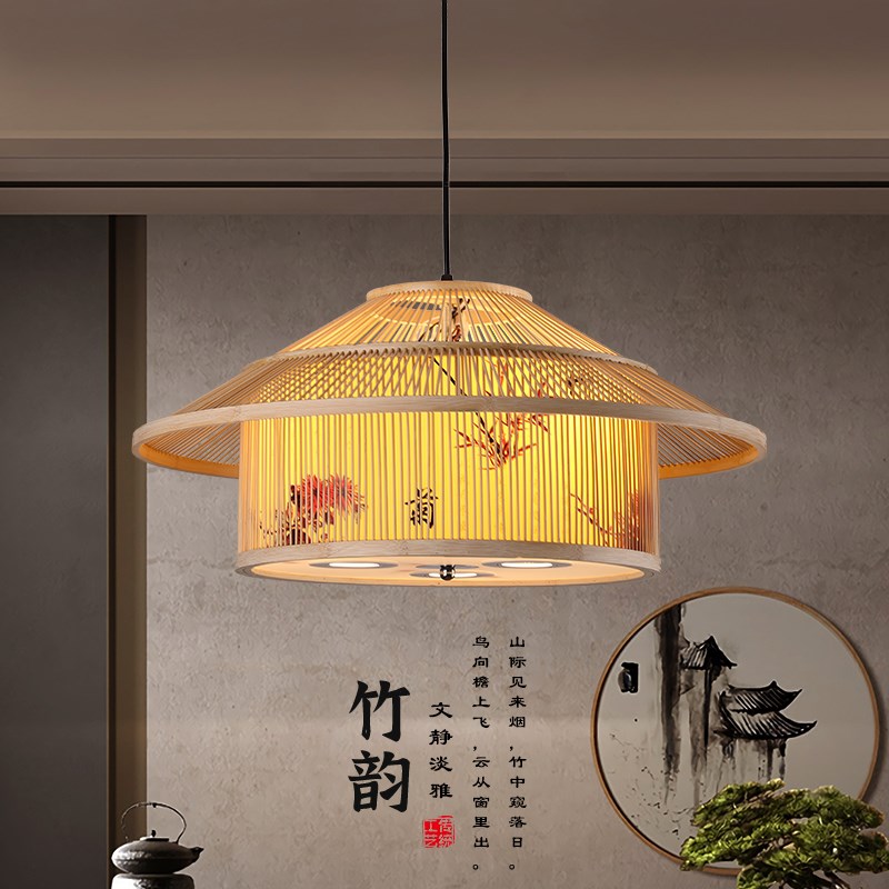 中式竹编餐厅包厢灯笼吊灯火锅店带射灯饭L店包间民宿竹艺帽形灯