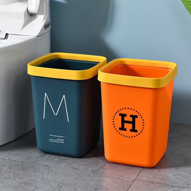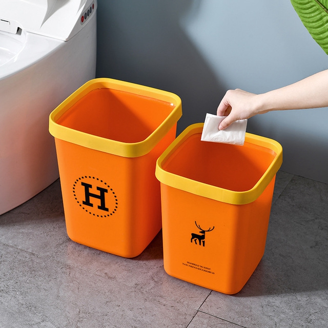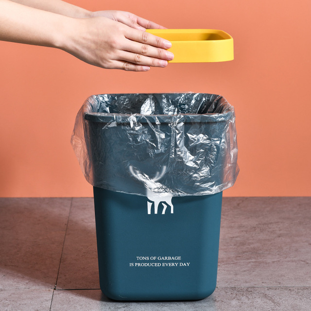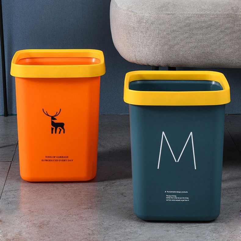 垃圾桶方形欧式酒店垃圾桶家用无盖塑料桶带压圈北欧风ins大容量