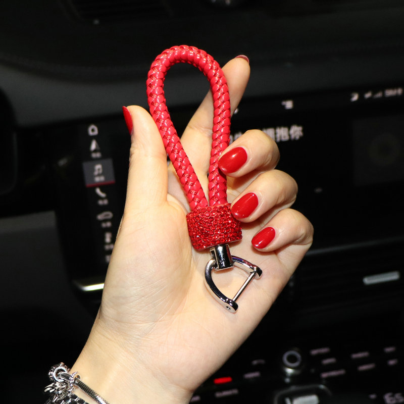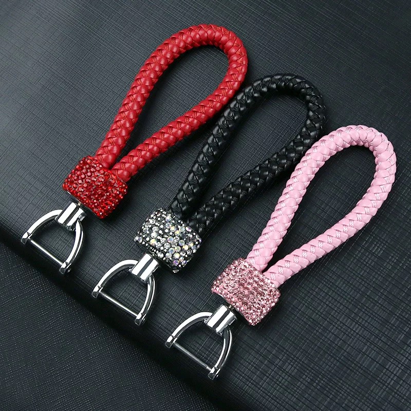汽车钥匙扣天鹅镶钻创意编织皮绳钥匙链挂件男女情侣款车载用