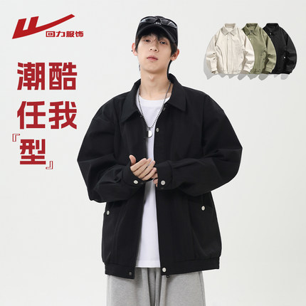 回力美式复古工装外套男士春秋季2025新款高级感日系休闲翻领夹克