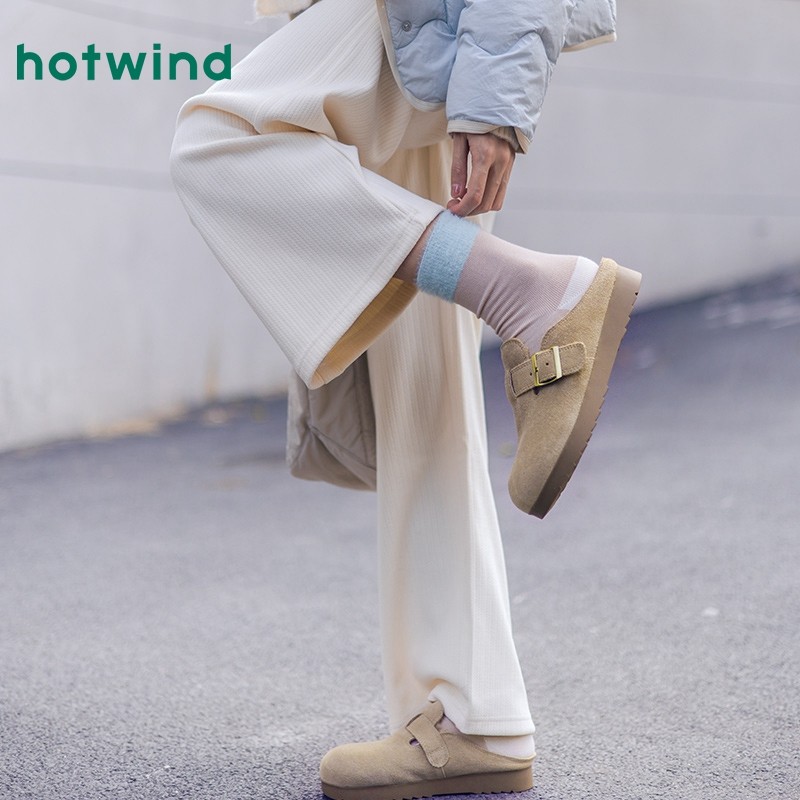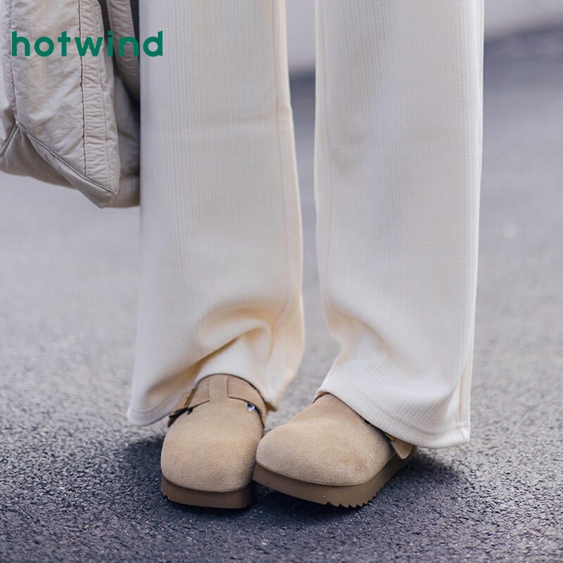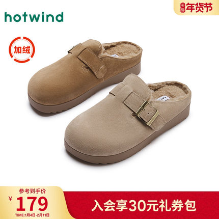 热风加绒勃肯鞋女2024年冬季新款复古厚底休闲半拖棉鞋女H02W4409