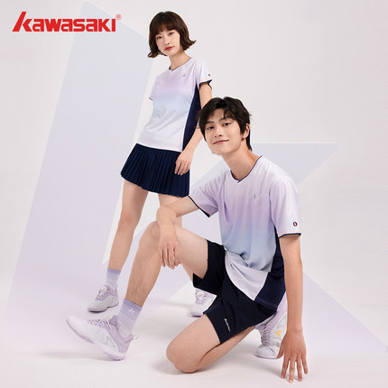 川崎专业羽毛球服果缤纷渐变运动短袖T恤男女吸汗透气速干衣套装