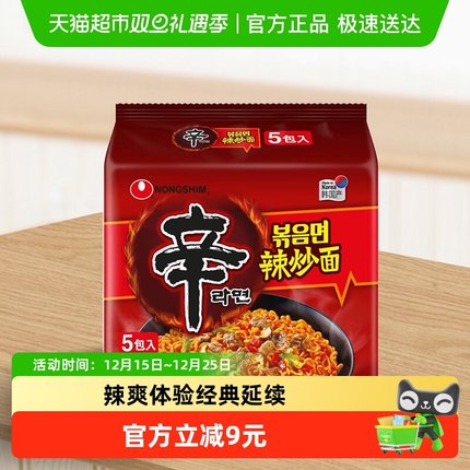 农心韩国进口辛拉面辣炒面辣味方便面泡面135g*5包(12个月)
