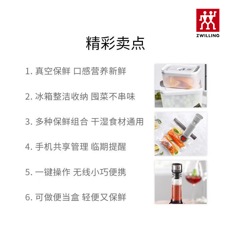 双立人抽真空保鲜盒方形食品级保鲜袋真空泵抽气冰箱食品厨房收纳