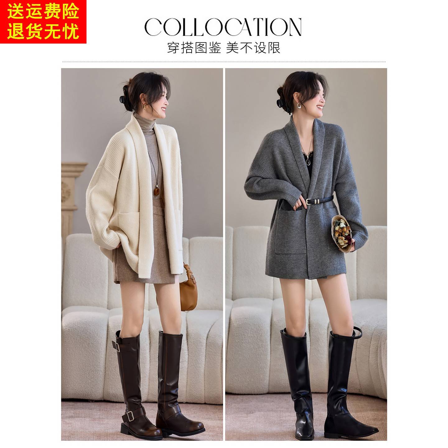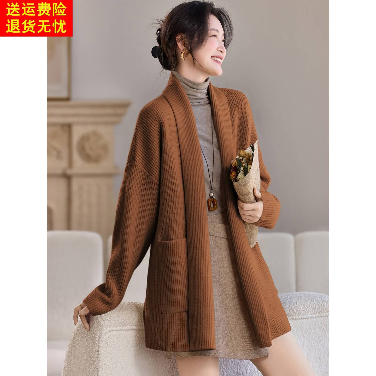 软糯大翻领针织开衫女秋冬2025新款慵懒风中长款宽松粗针毛衣外套