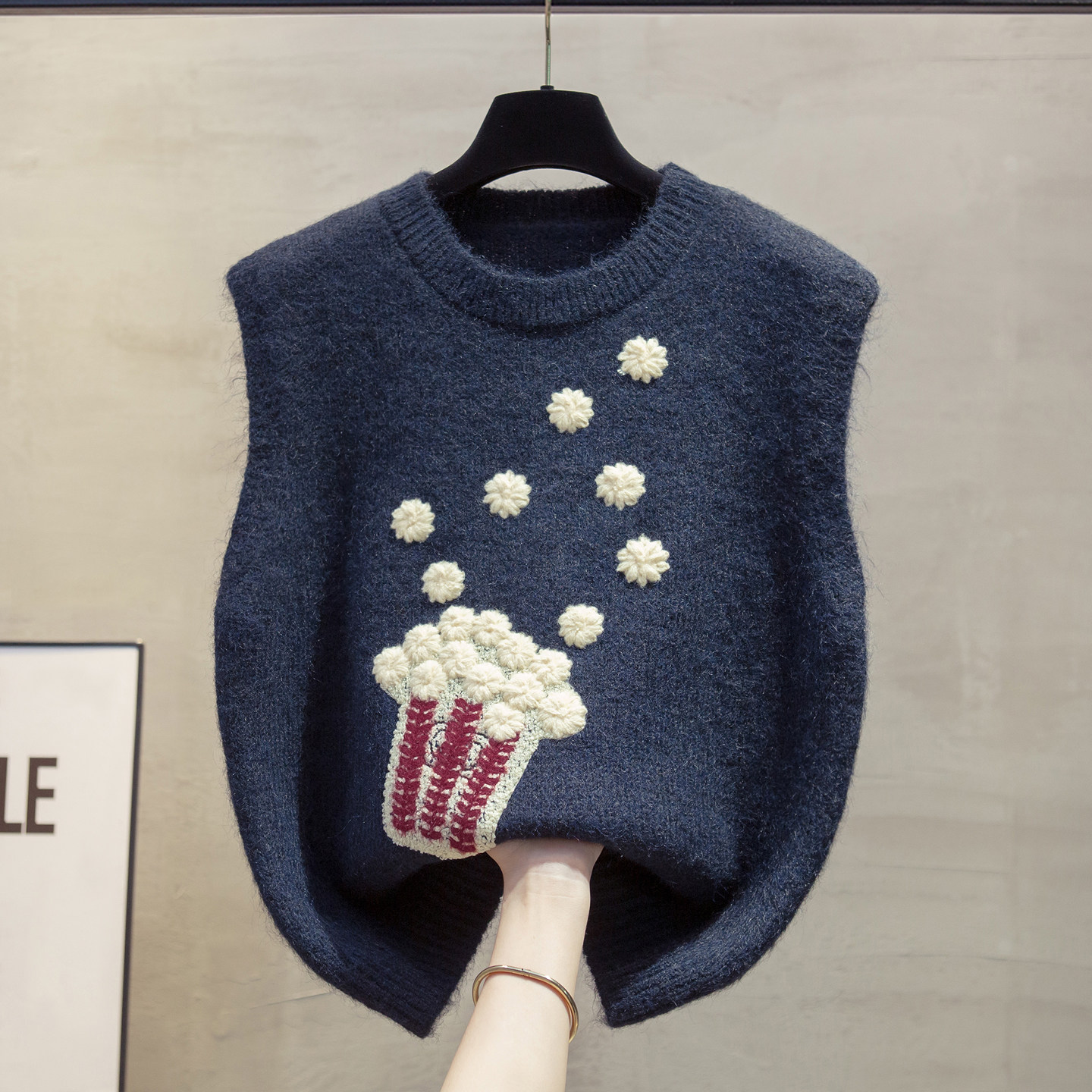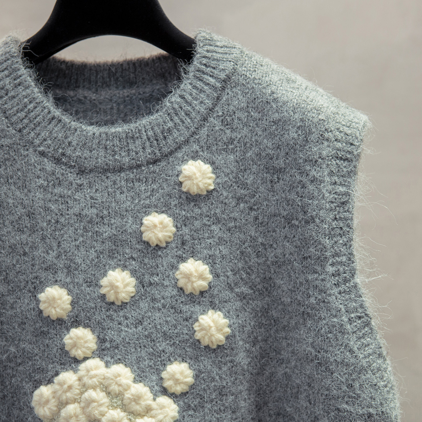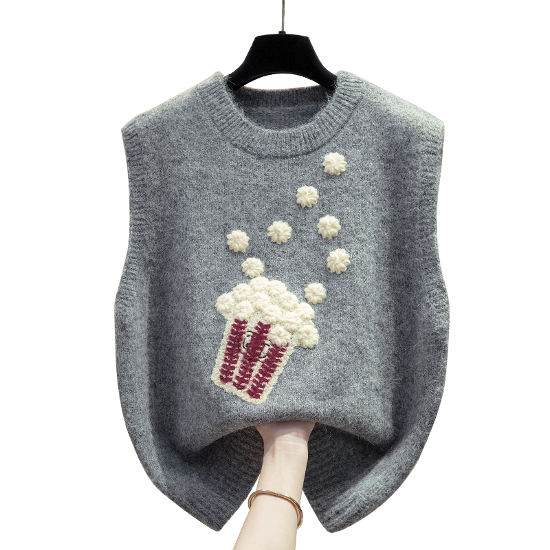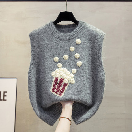 羊毛绣花圆领针织马甲背心女坎肩