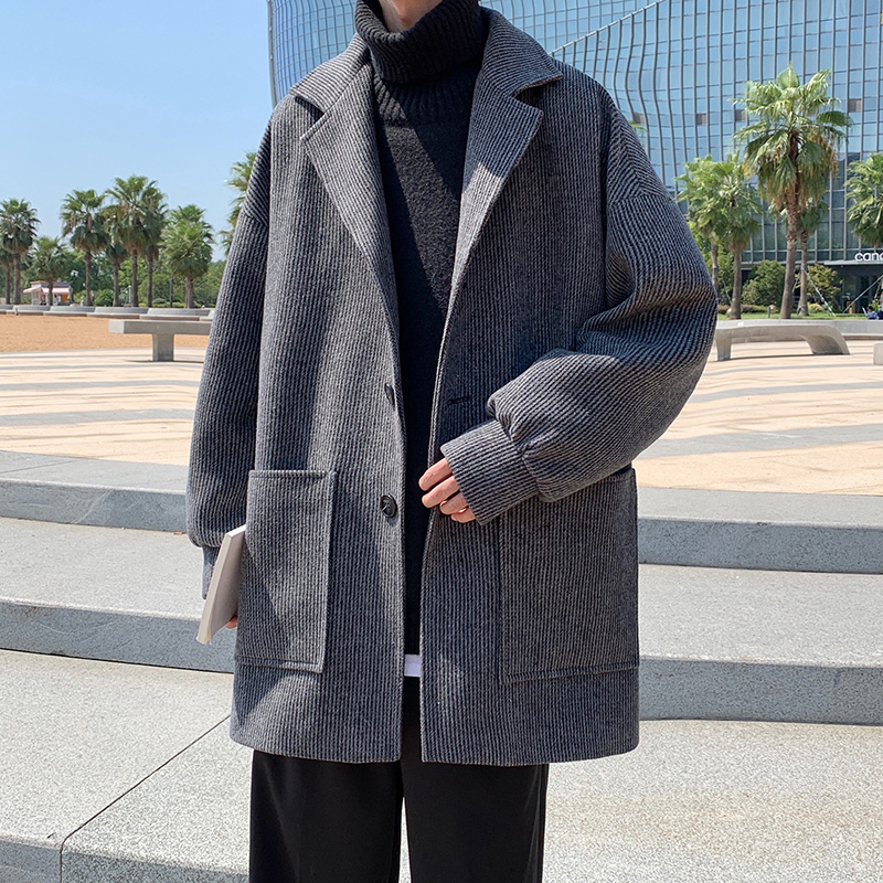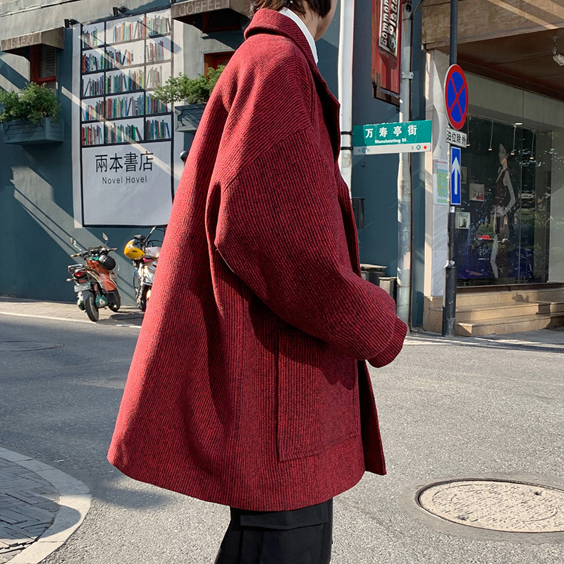 秋冬季西装领风衣男中短款ins潮韩版毛呢外套潮牌西服大衣中长款